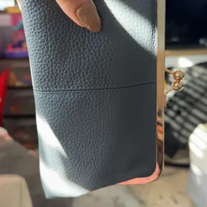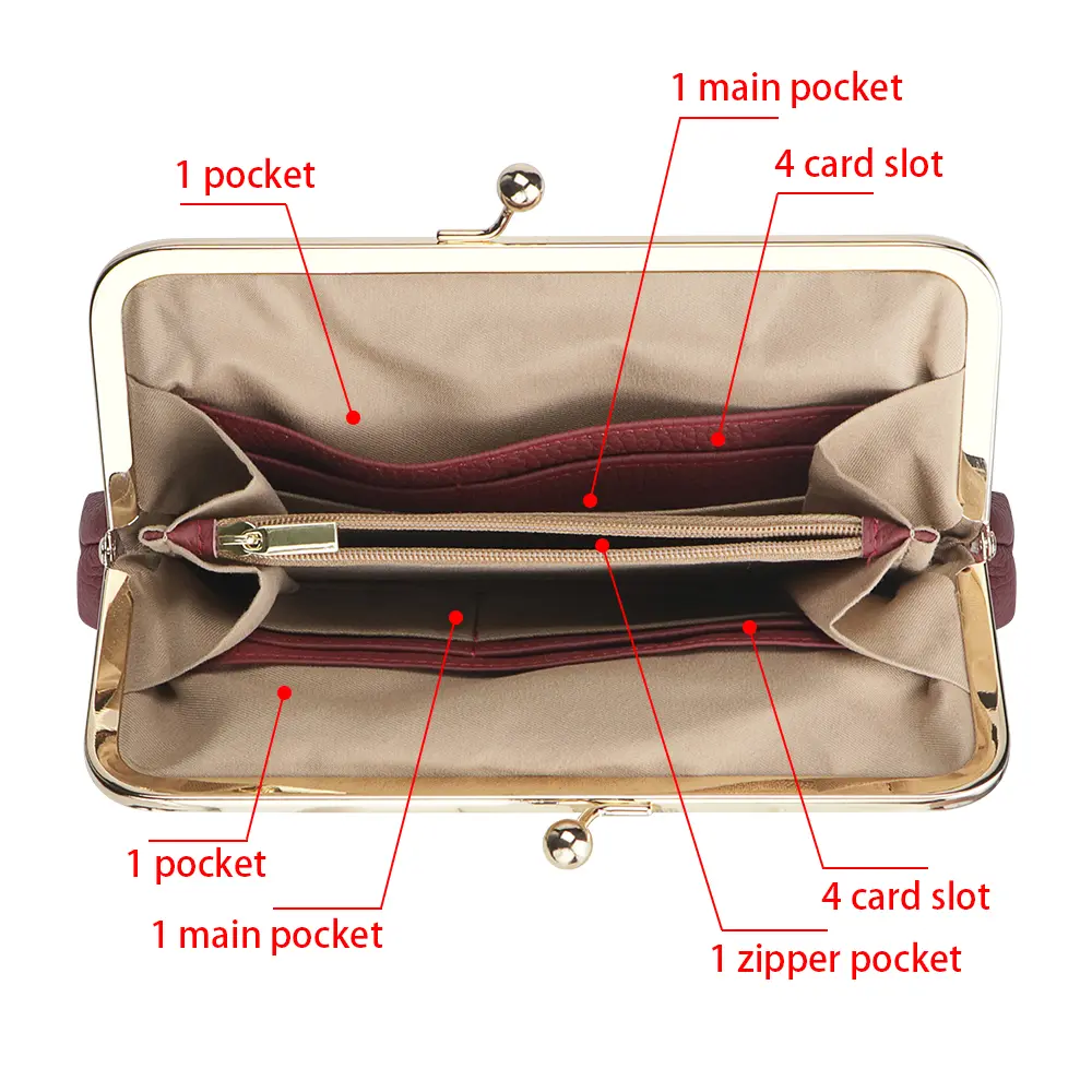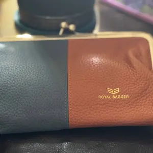 You open the package and hit with the great scent of leather…. This a beautiful wallet and like the uniqueness of the two tones on a very classic kiss lock wallet. Royal Bagger ….amazing craftsmanship, the leather is soft to the touch, quite spacious as well. Shipping was quick too!
