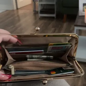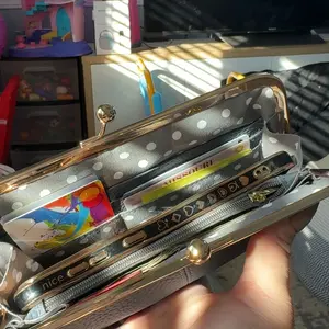 Adorable and sooo spacious ! Holds all my cards , change & receipts , and even a lip gloss!! I chose the pretty blue!!