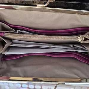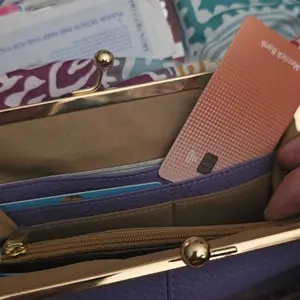 Super gorgeous and plenty large enough for all my cards and paper currency and coin currency… Highly recommend… My best friend has purple her favorite color and it’s a lovely shade of purple. It’s perfect… I recommend this.!!!