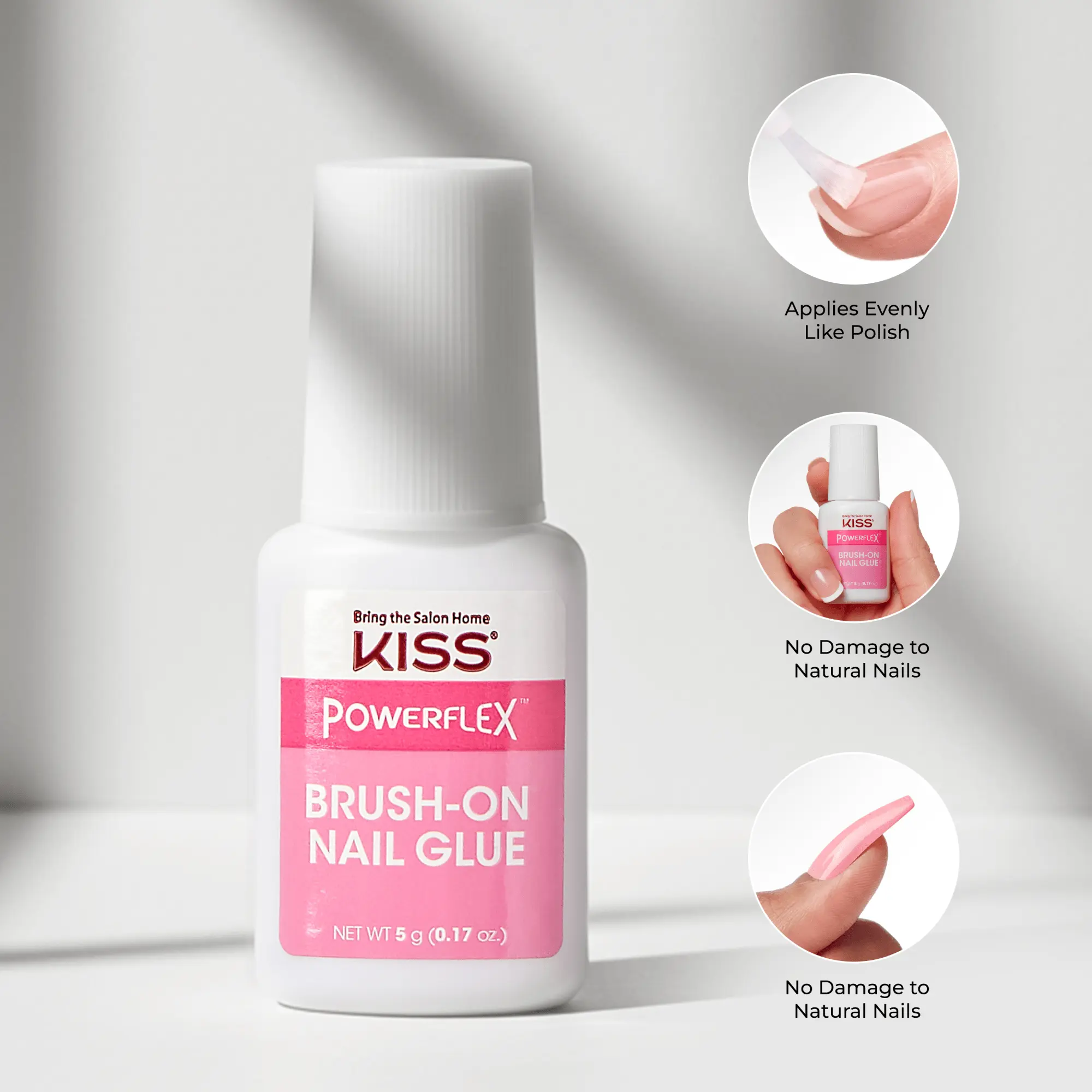 KISS PowerFlex Nail Glue is the latest innovation in super-hold adhesives with flex formula technology that brushes on evenly, so artificial nails will adhere to your natural nails without any gaps. Super strong instant bond dries in just 3 seconds.