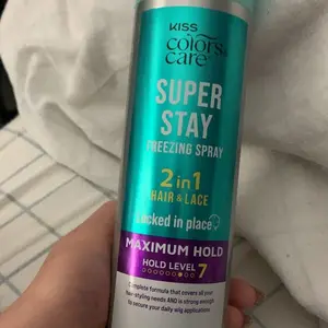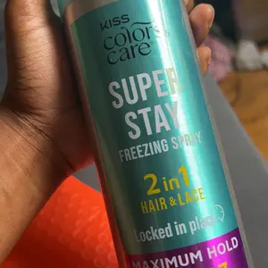 KISS Colors & Care Maximum hold 2-in-1 Super Stay Freezing Spray is a multi-purpose, fast-drying formula that delivers maximum hold for secure wig applications.