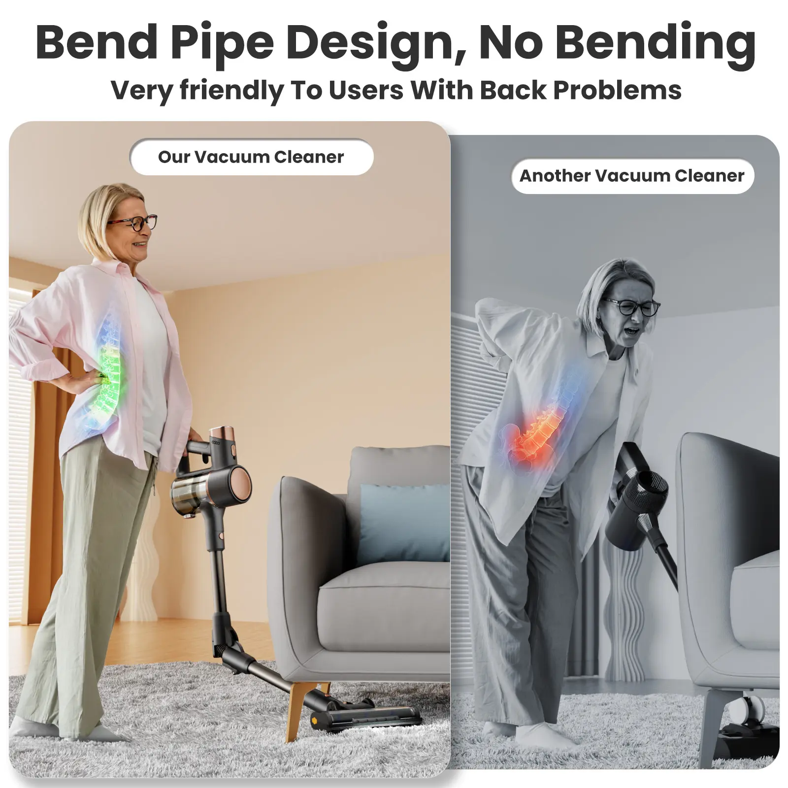 ·Dead-Angle-Free Cleaning, No Bending: 90° bendable long tube (30-180° adjustable) – clean under beds/sofas without bending, reducing waist strain (ideal for arthritis or mobility-impaired users). 180° side-swing & 90° up-down rotatable floor brush reaches corners and furniture gaps for true "dead-angle-free cleaning".