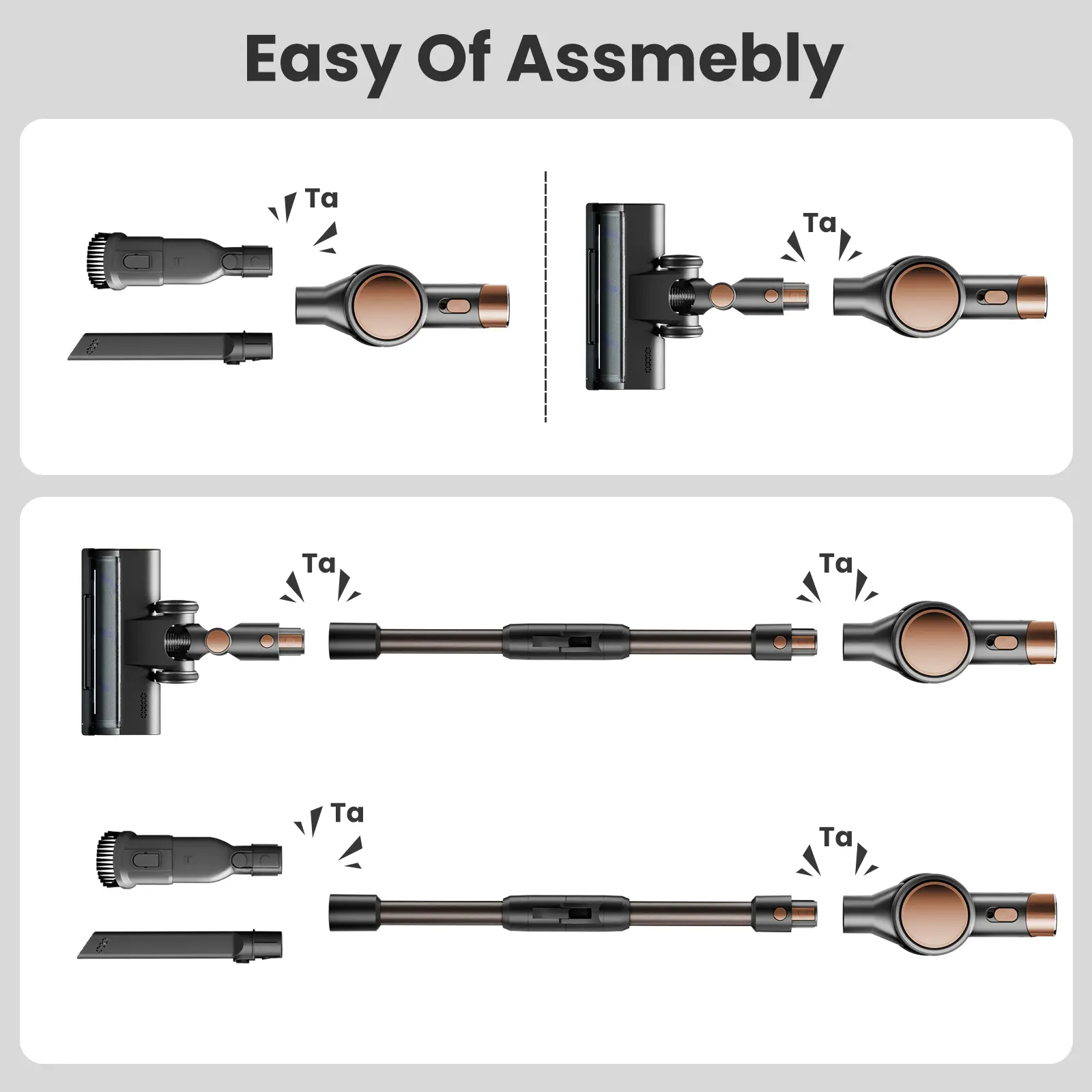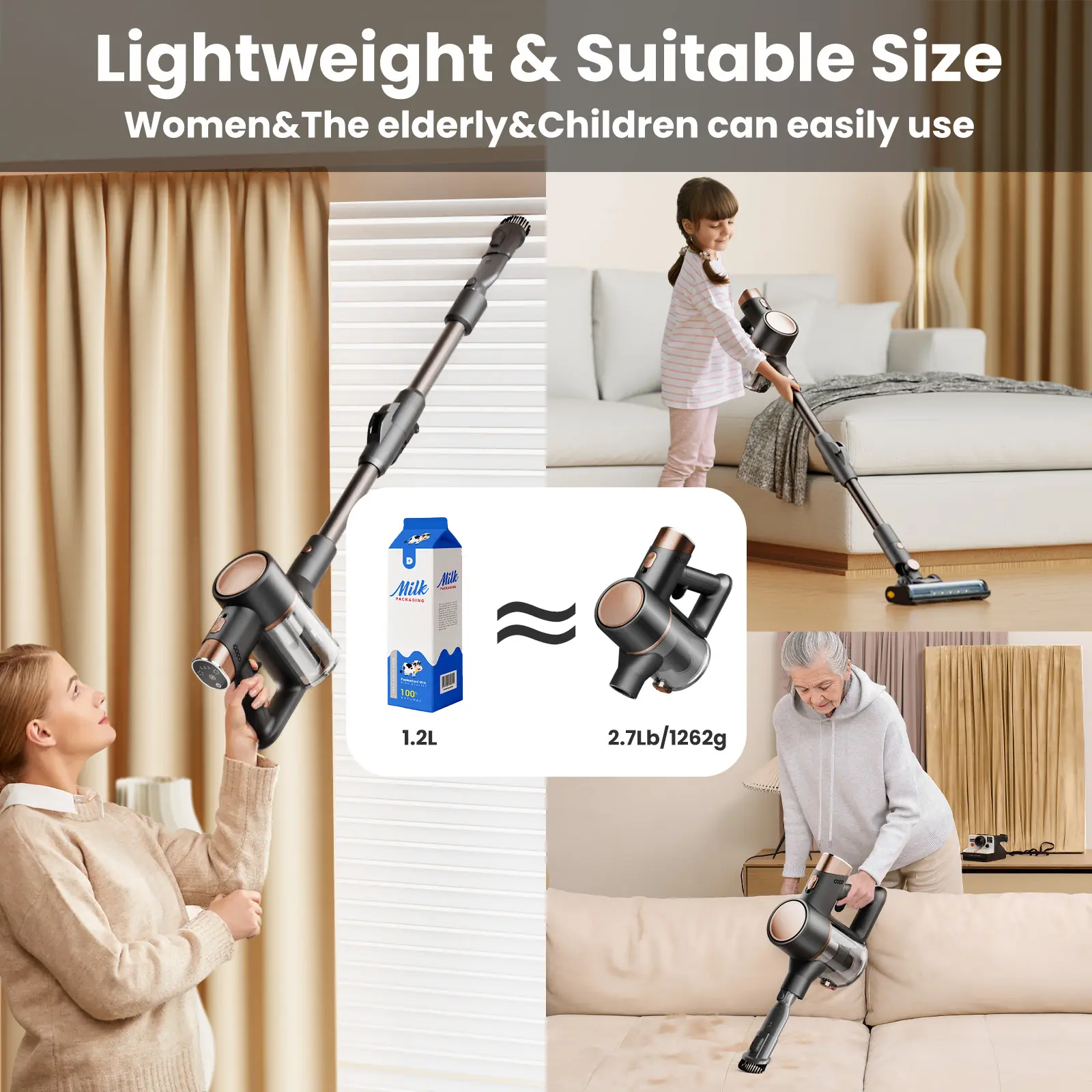 ·Ultra-Light Body, Family-Friendly Use: Main unit weighs only 2.7lb (≈1.22kg, same as a 1.2L milk carton). Easy for women, the elderly and kids to hold and operate. No strenuous lifting for whole-house cleaning; no arm soreness even with long use. No more "heavy burden" of traditional vacuums.