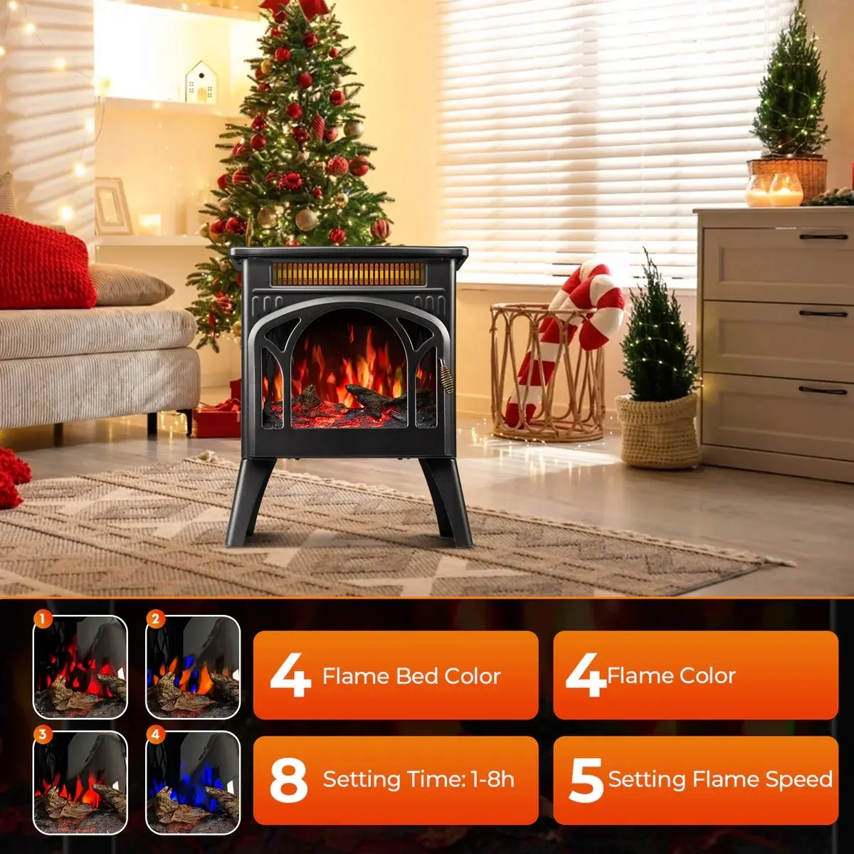 Choose from 14 dynamic flame colors and 4 flame bed hues to match your mood or decor effortlessly. Whether you crave warm amber glows for a romantic night or cool blue tones for a modern vibe, this fireplace lets you create the perfect atmosphere without the mess of real wood.