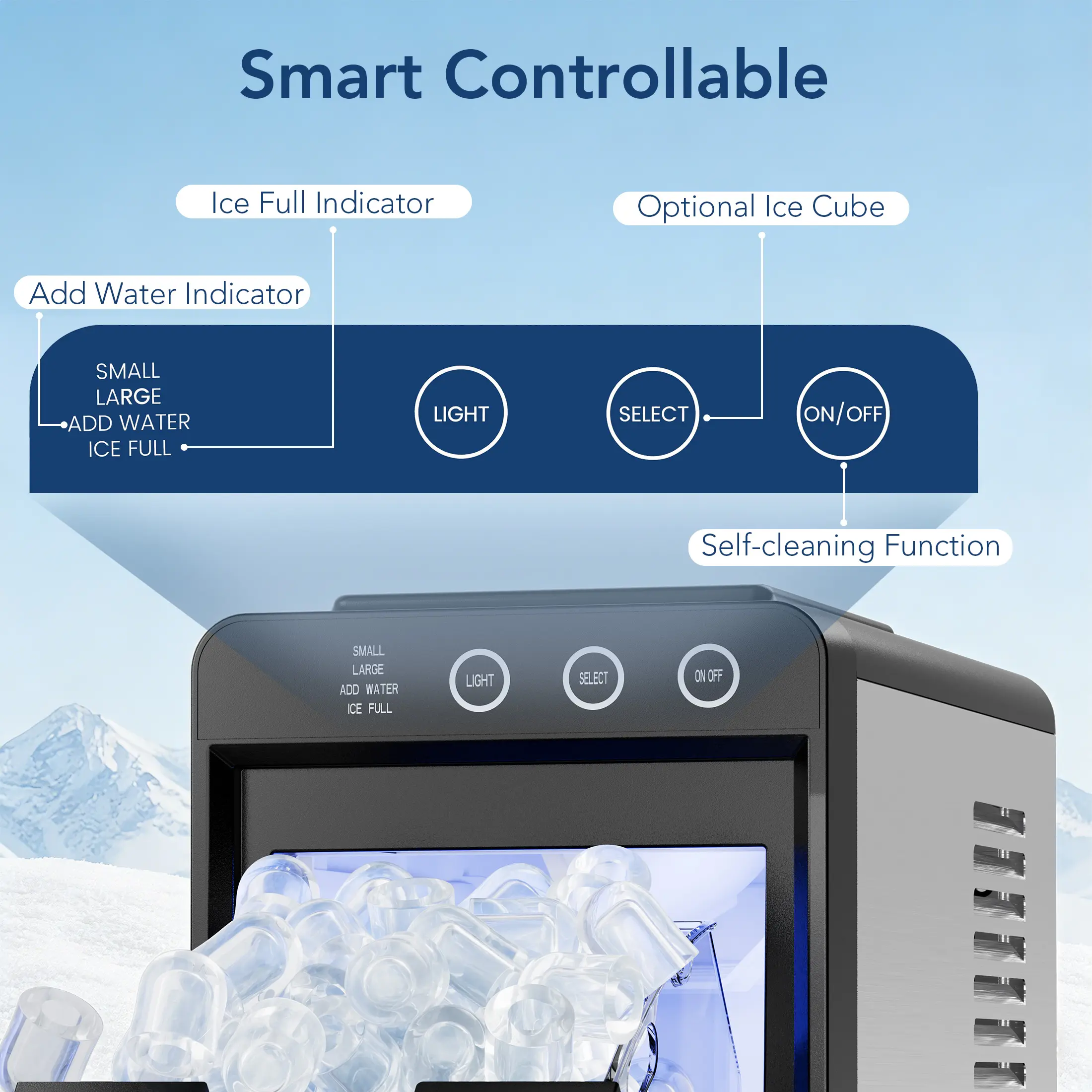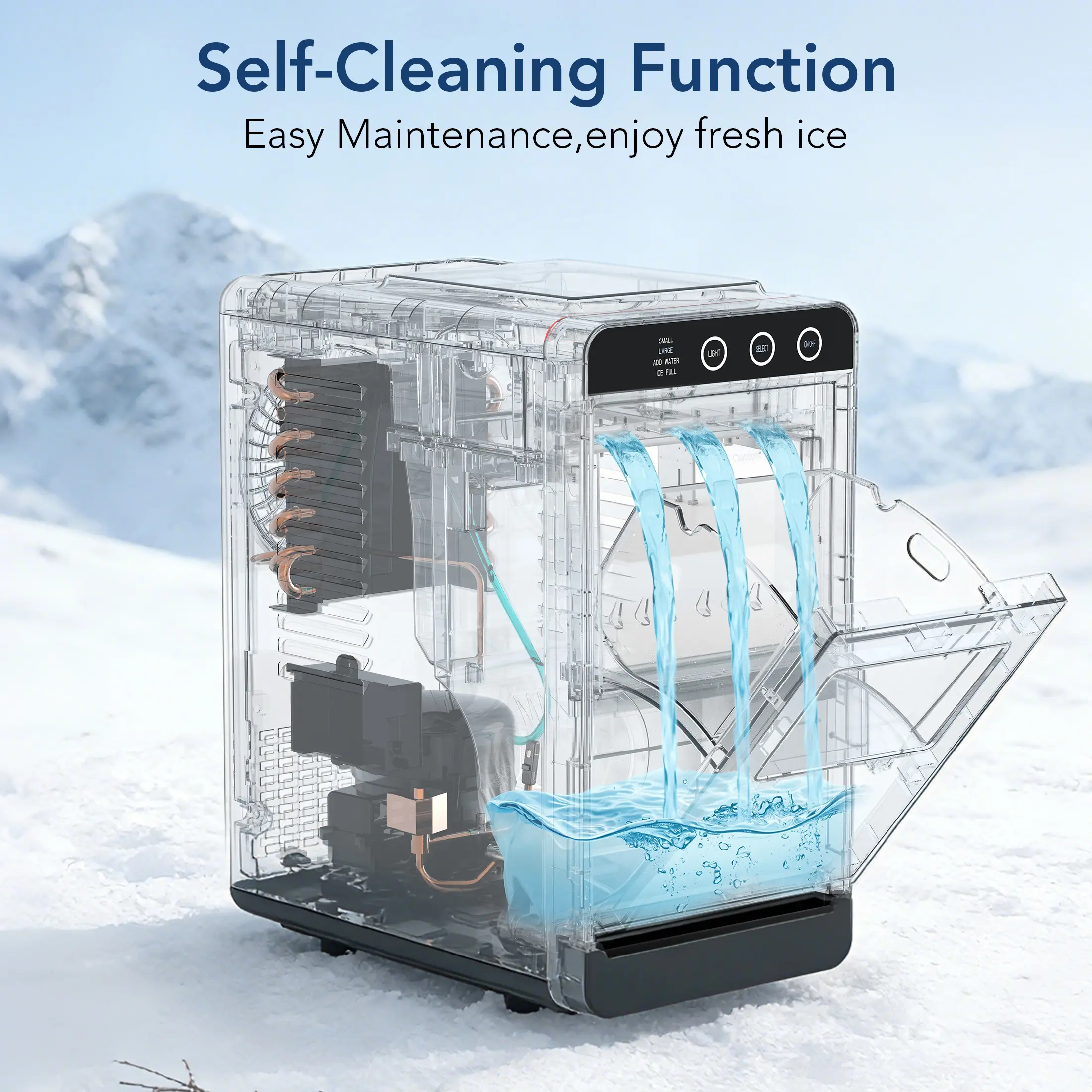 ·Self-Cleaning Function: One-touch self-cleaning saves your time and effort. Keep the ice maker clean and the ice cubes fresh, no tedious manual cleaning required.