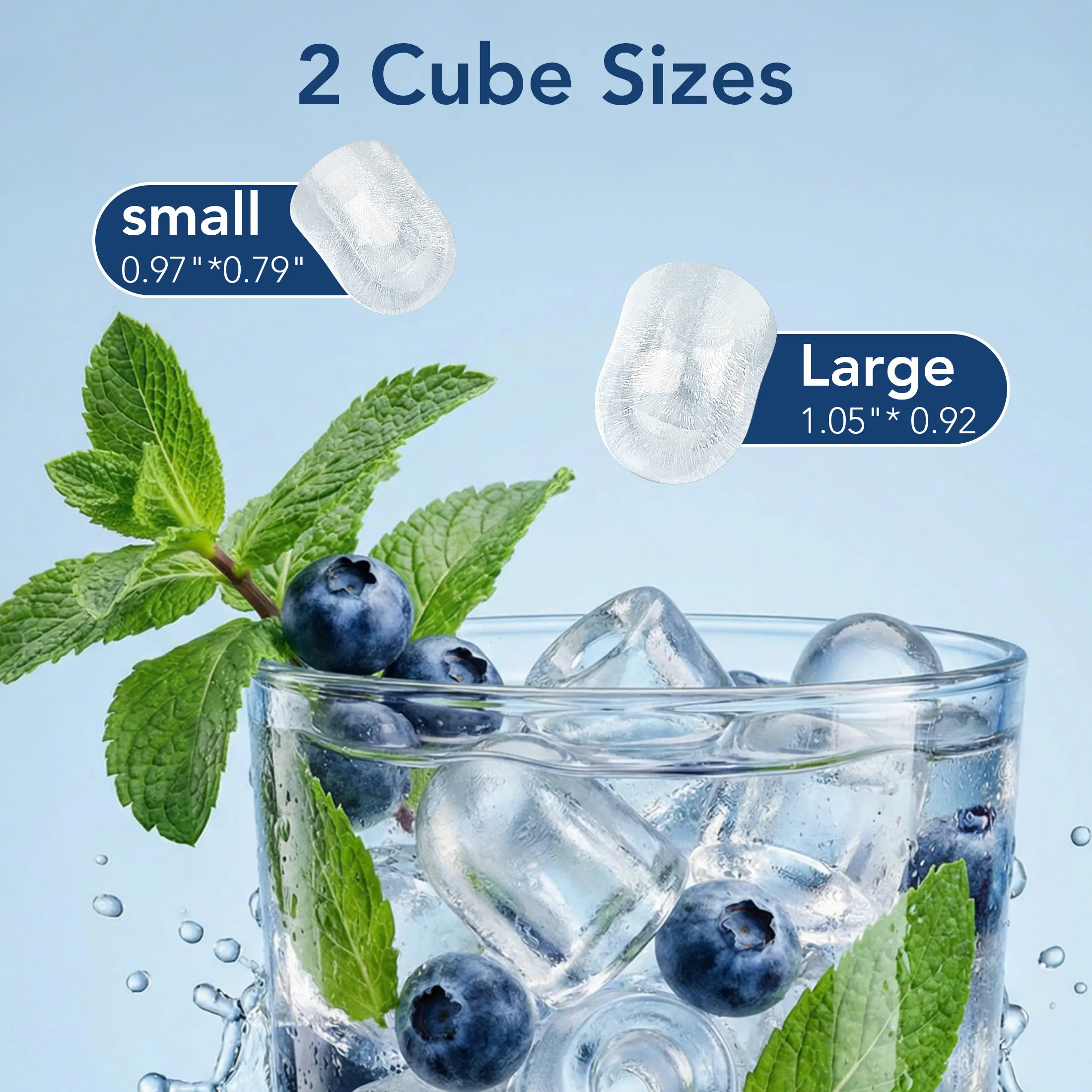 ·Two Ice Cube Sizes: Large ice cubes for whiskey/food cooling; small ice cubes for quick cooling of juice/coffee/tea