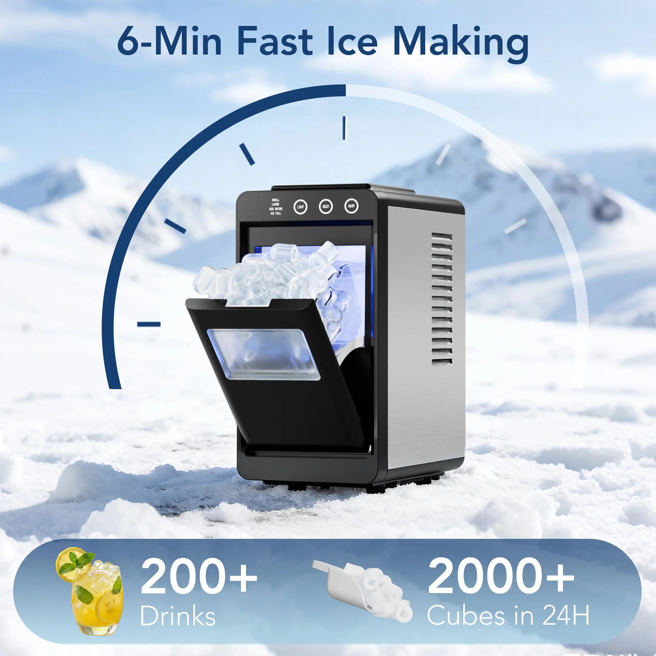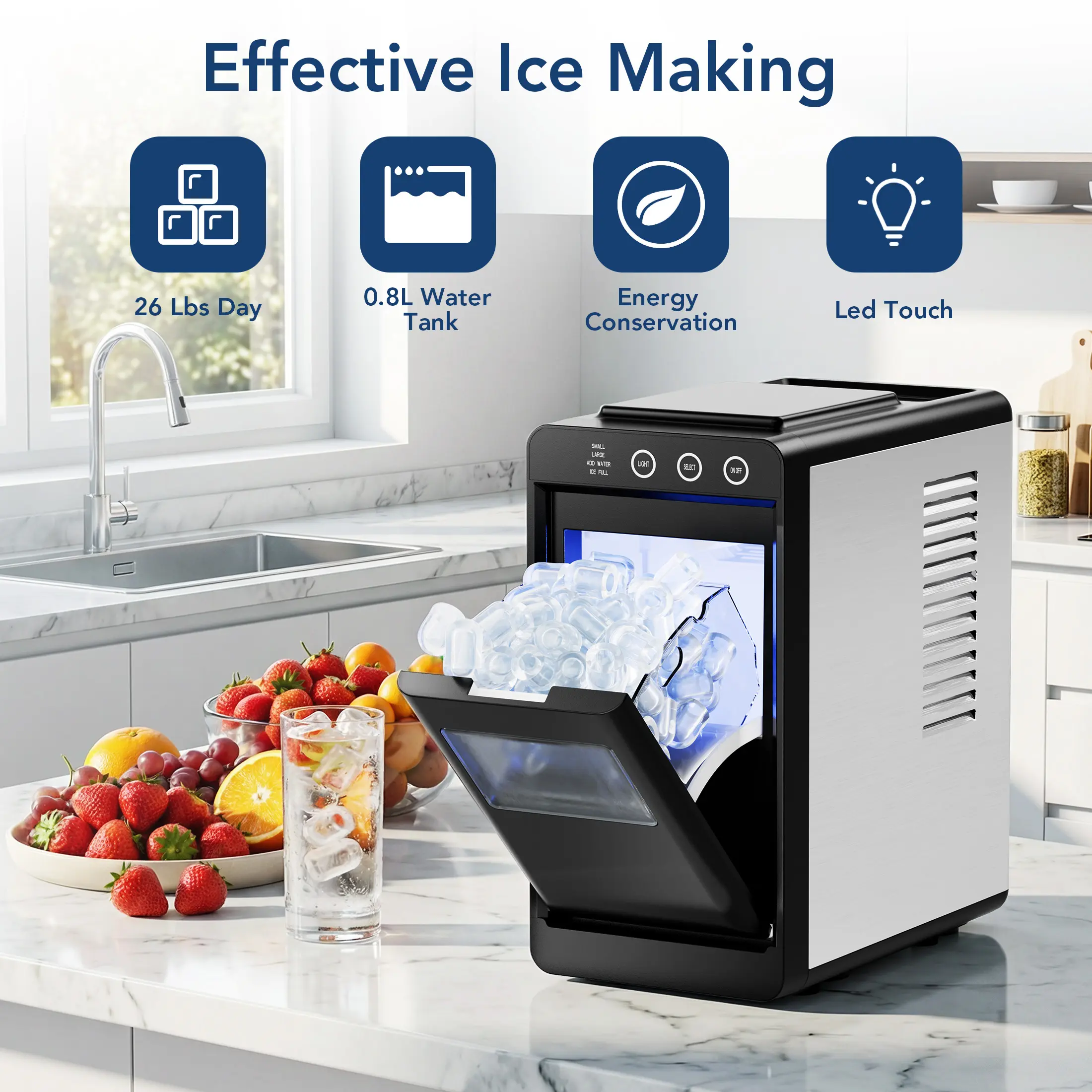 ·Efficient Ice Making: Produces ice in just 6 minutes, 26 lbs of ice per 24 hours, meeting all-day cooling needs