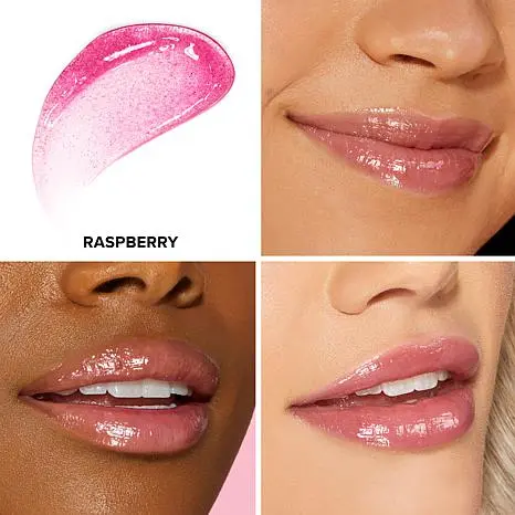 Too Faced 3-piece Kissing Jelly Lip Oil Gloss What It Is Kissing Jelly lip gloss hydrates with ultra-nourishing natural oils giving you the instant hydration of a lip oil with the non-sticky candy shine of a lip gloss. Infused with a blend of sunflower and jojoba seed oils that softens lips and creates a high shine look.   What You Get (1) .15 oz. Bubble Gum Kissing Jelly Lip Oil Gloss (1) .15 oz. Raspberry Kissing Jelly Lip Oil Gloss (1) .15 oz. Sour Watermelon Kissing Jelly Lip Oil Gloss What It Does   High-shine lip oil/gloss hybrid with a non-stick finish Nourishing blend of sunflower and jojoba seed oils help moisturize lips Extra-large applicator for smooth, luxurious application Universal shades look good on everyone Cushiony, soft texture   How to Use Use the doe foot applicator to apply directly on clean dry lips or layer on top of your favorite lipstick for extra shine Lay the applicator flat against the lips to evenly distribute with a back-and-forth motion
