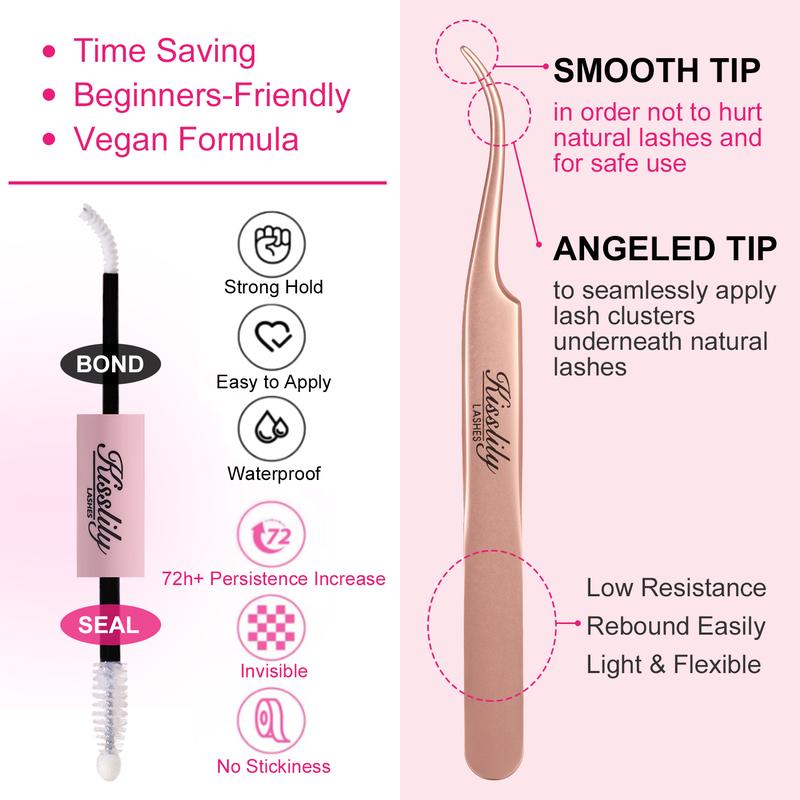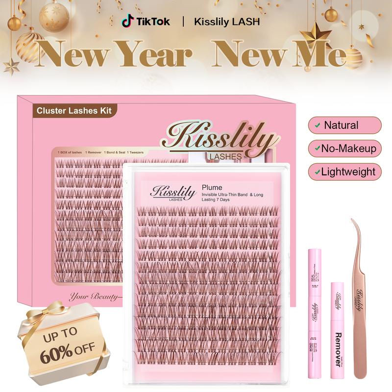I loved this Kisslily Lashes cluster eyelash kit from the first use. It comes complete with lashes, tweezers, glue, sealant, and remover, making it super practical and perfect for beginners and experts alike.