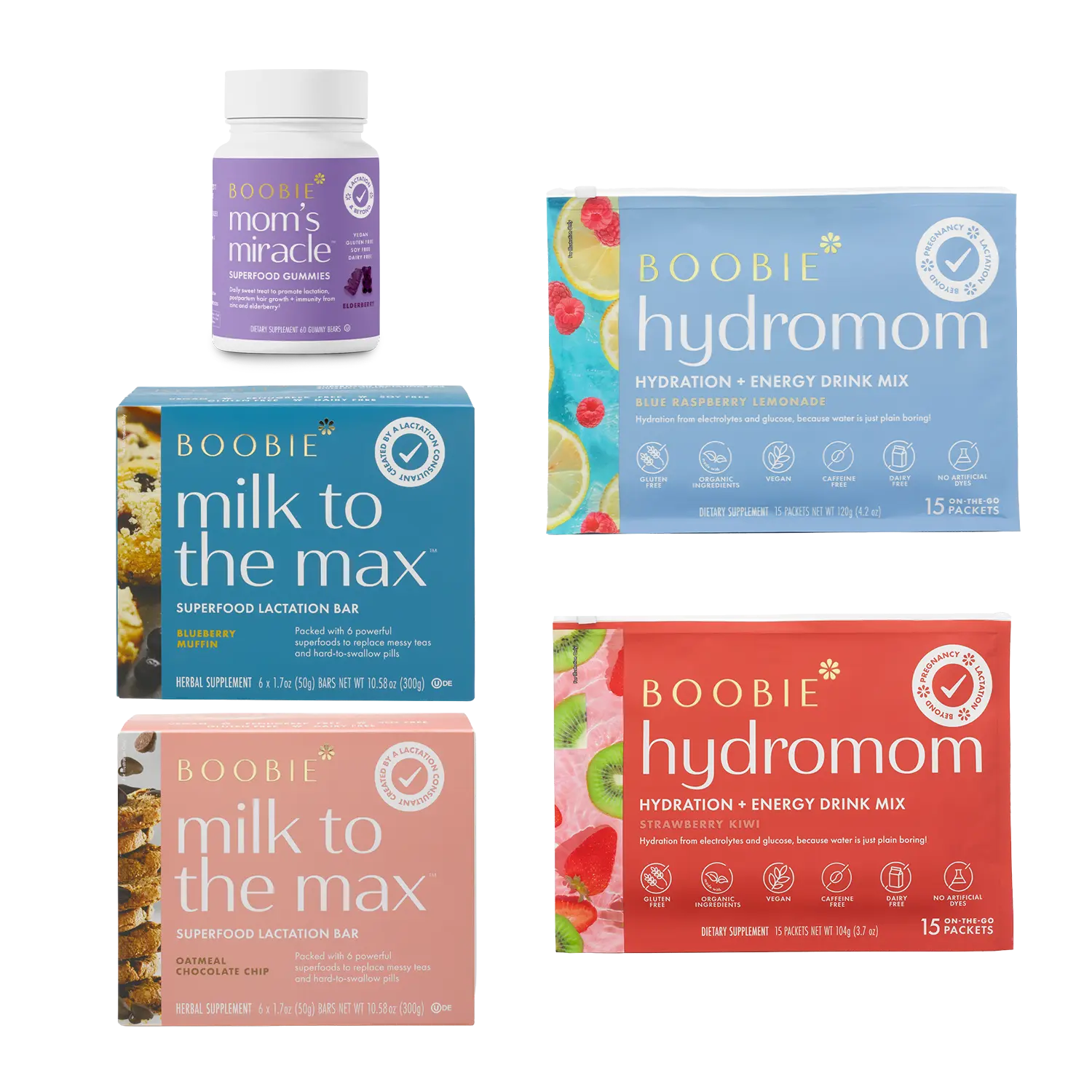 5. Boobie* Superfoods - The Milk Maker Kit - Maternity Supplements to Support Lactation, Electrolytes, Lactation Bars & Superfood Gummies
