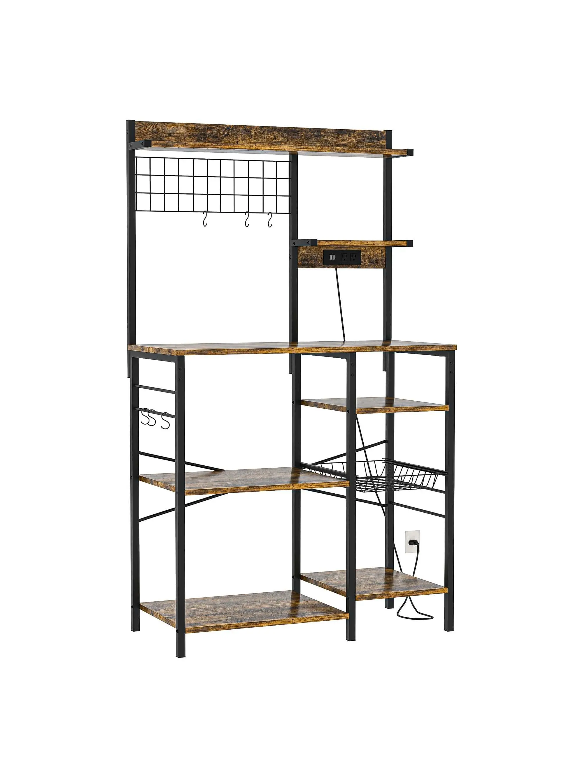 This Multifunctional Kitchen Shelf is the perfect addition to any organized home. With 5 tiers of storage, this freestanding utility rack is made from durable particle board and MDF materials, designed to hold a supported weight of over 25kg. One of the key features of this kitchen shelf is its versatility. Equipped with a charging board, you can conveniently plug in your microwave oven, kettle or rice cooker and use them at any time. This makes cooking and preparing meals in your kitchen easier than ever before. The rectangular shape makes it perfect for placing in your kitchen for easy access to all your cooking essentials. You can install it as a cabinet-rack with ease thanks to its convenient design. The space-saving feature ensures that you have enough room for all of your appliances without taking up too much space in the kitchen. Its sturdy construction ensures that it will last for years without needing replacement. Overall, if you're looking for a reliable storage solution that will help keep everything organized while also being stylish and functional at the same time - then this Multifunctional Kitchen Shelf Kitchen Bakers Rack with Storage is definitely worth considering!