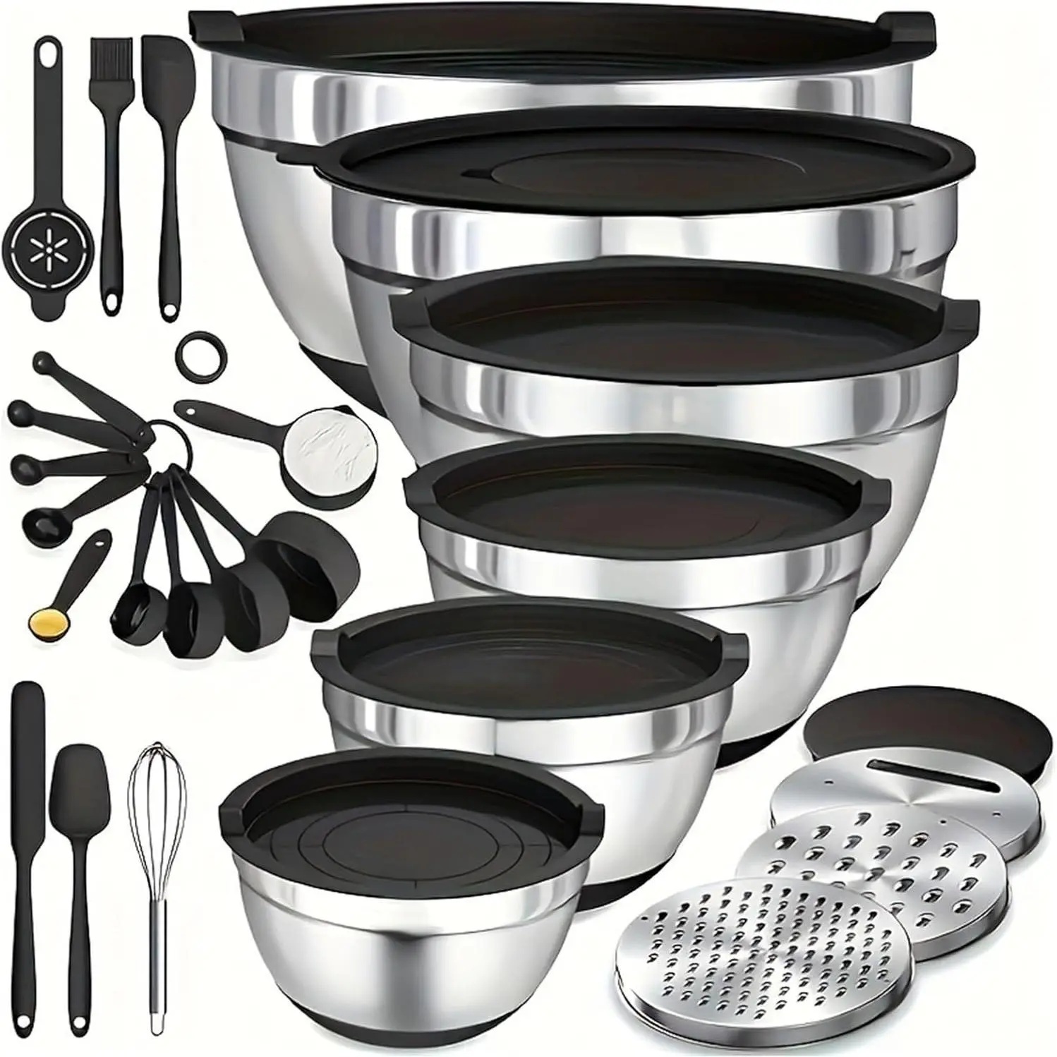 This 21-piece set includes stainless steel mixing bowls, lids, graters, whisks, and utensils. Perfect for baking and prep, this set offers a comprehensive range of tools. The stackable organizer ensures easy storage. 🏠