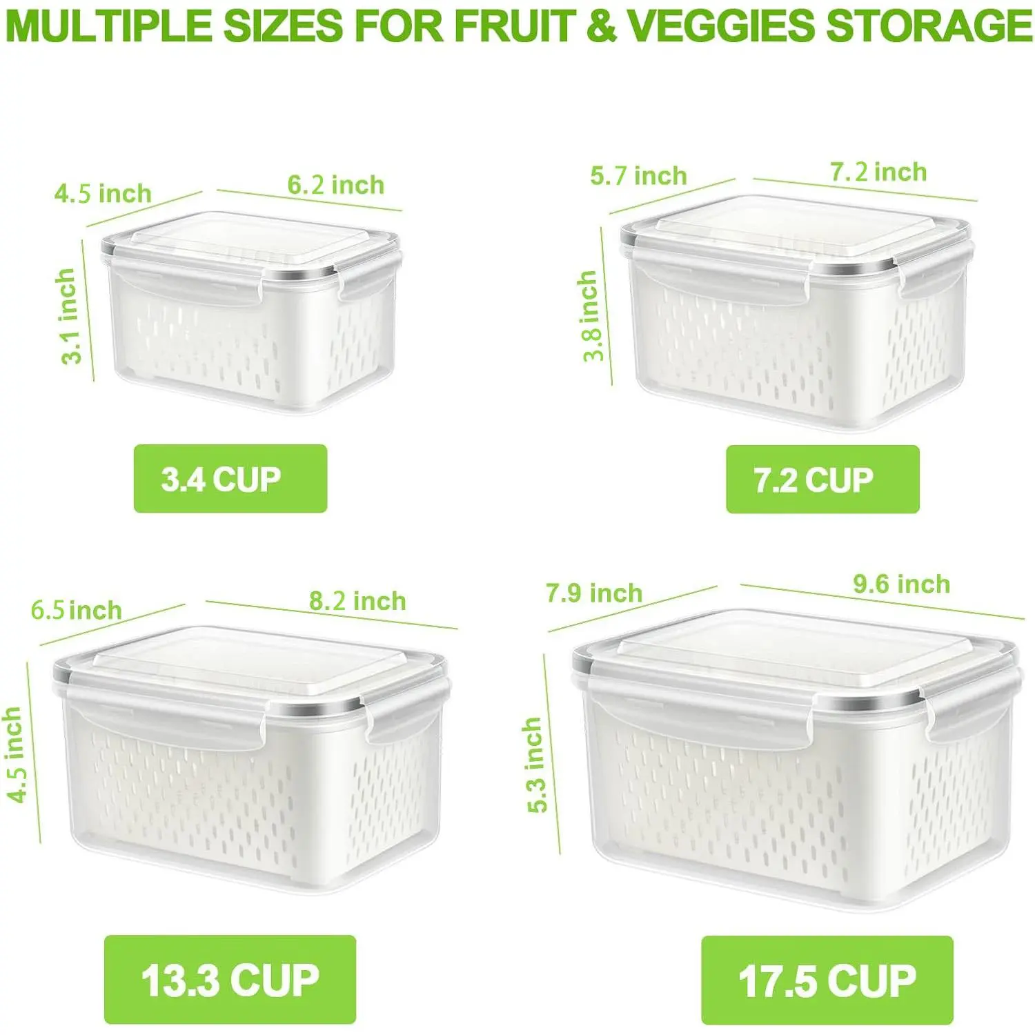 Kitchen Colander with Storage Container Removable Strainer Airtight Lid Leakproof Dustproof BPA Free Food Grade PP Produce Saver 4PCS 6PCS Set