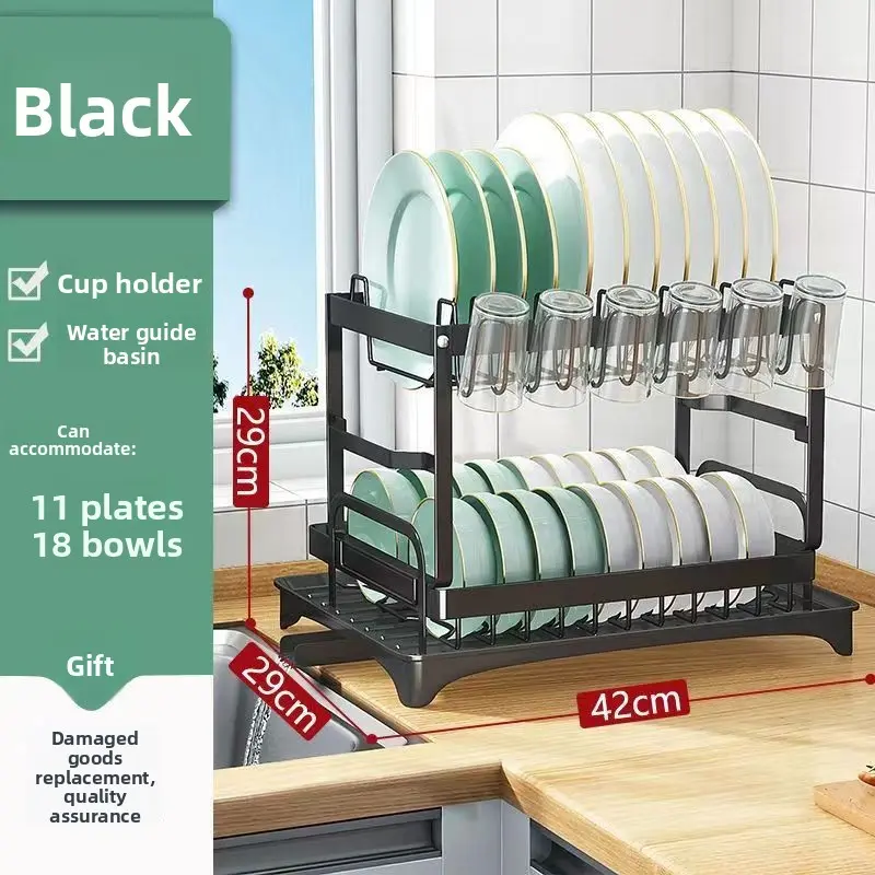 Black Double Layer Dish Rack (Fully Equipped)