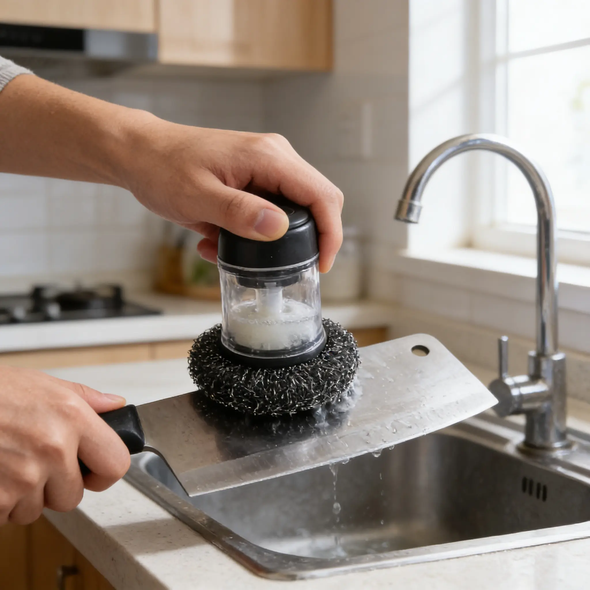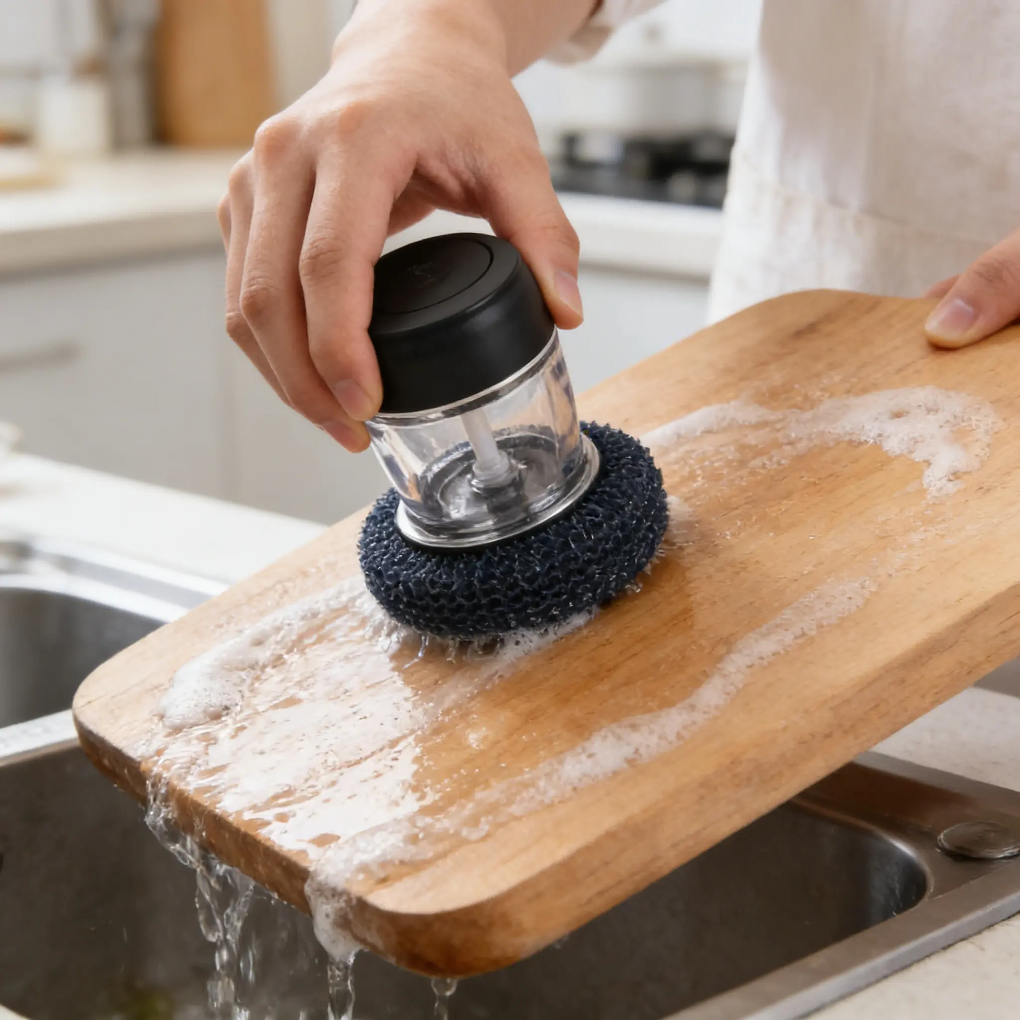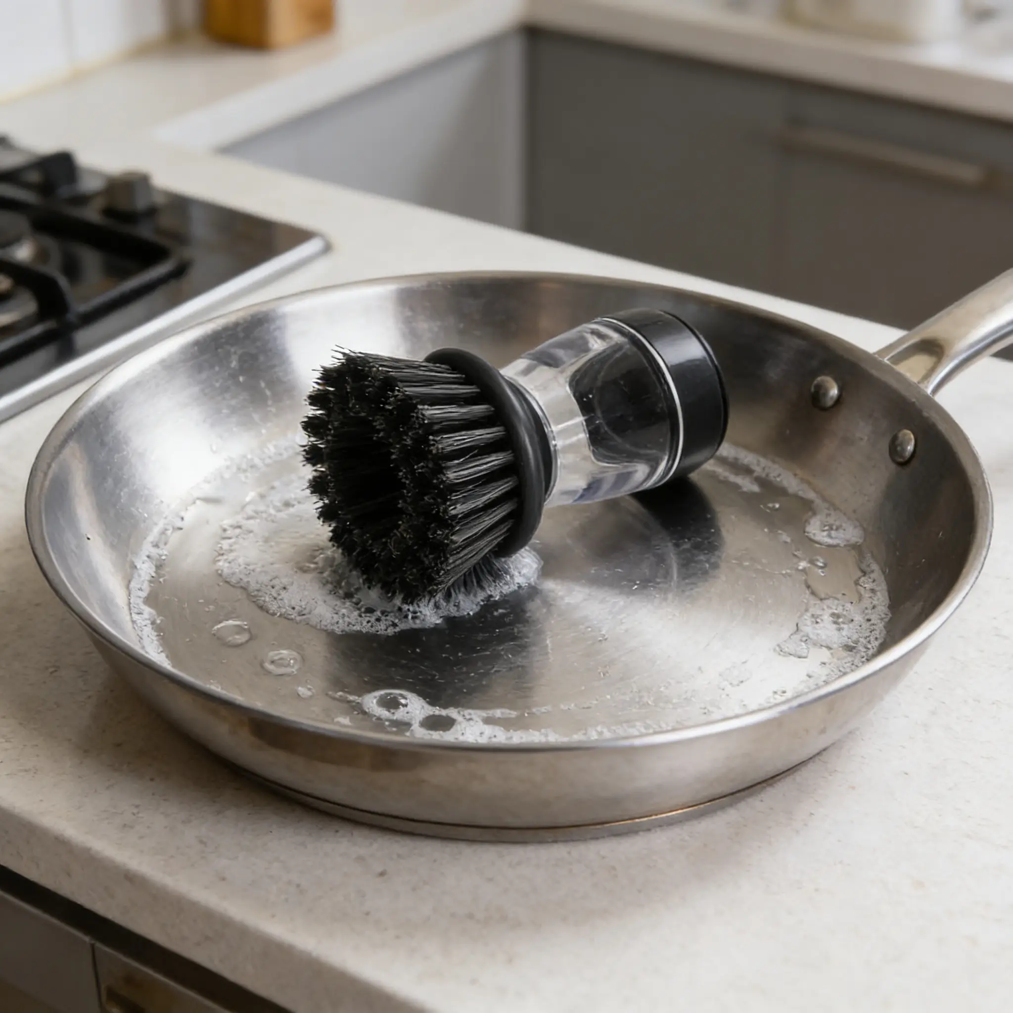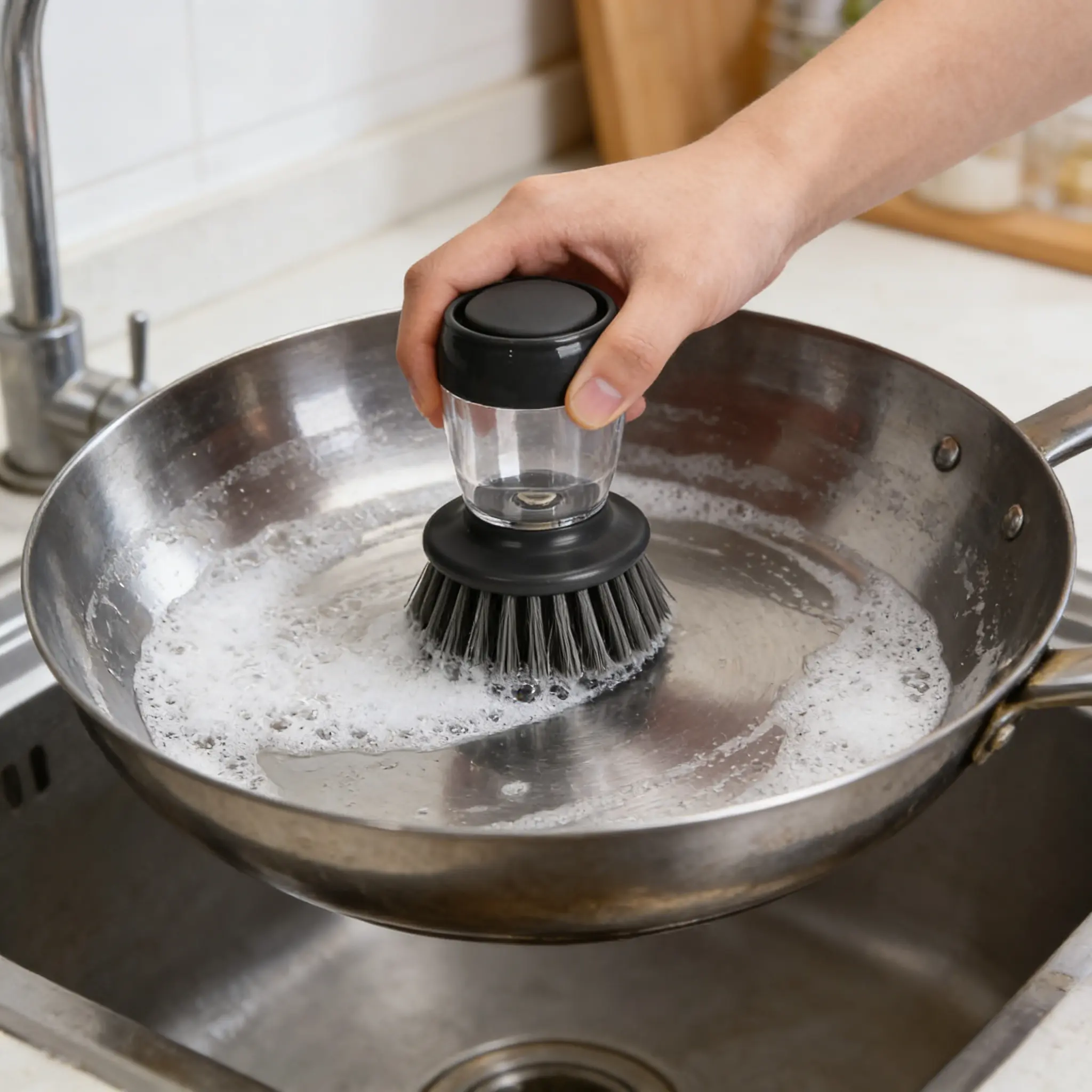 ·Heavy-duty scrub brush for tough pots, pans, and stuck-on messes