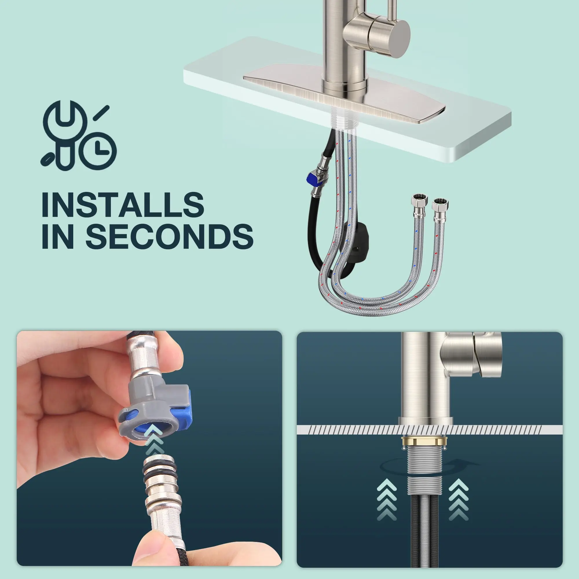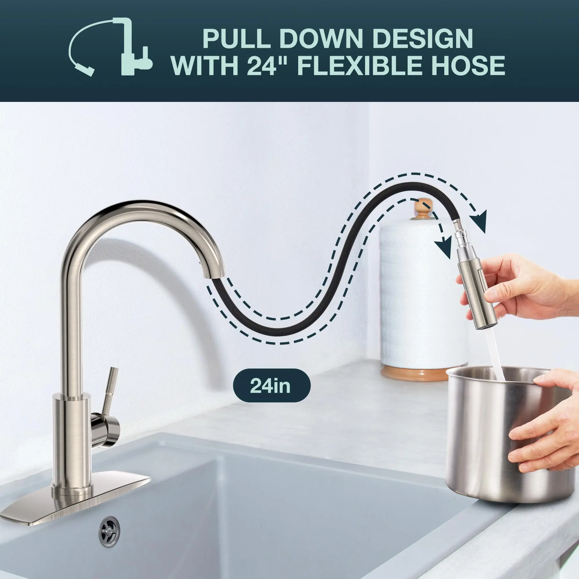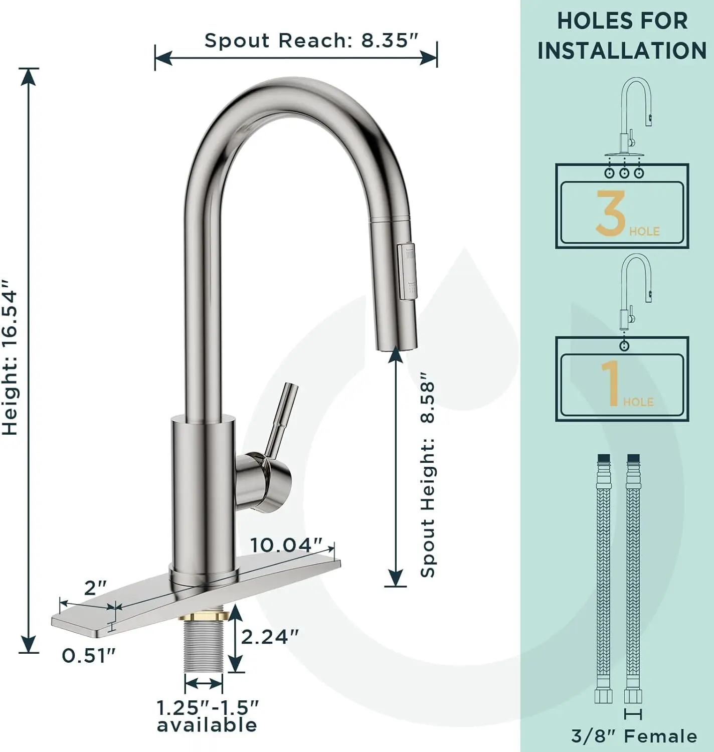 ·【Escort for your health】The pull down kitchen faucet hose is made of high quality PEX, which is flexible, crack-resistant and high temp resistant. Lead-free construction with honeycomb aerator, multi-layer filtration, cleaner and healthier water. CPUC and NSF certification to ensure healthy water for you and families.