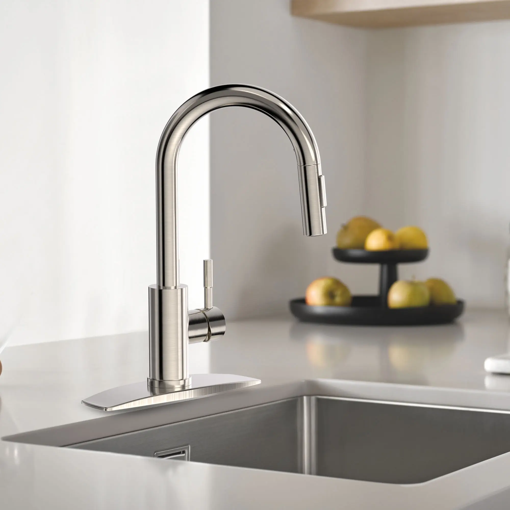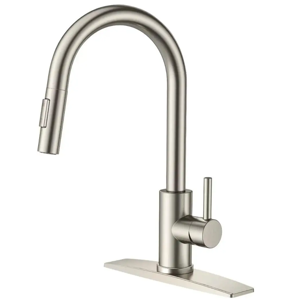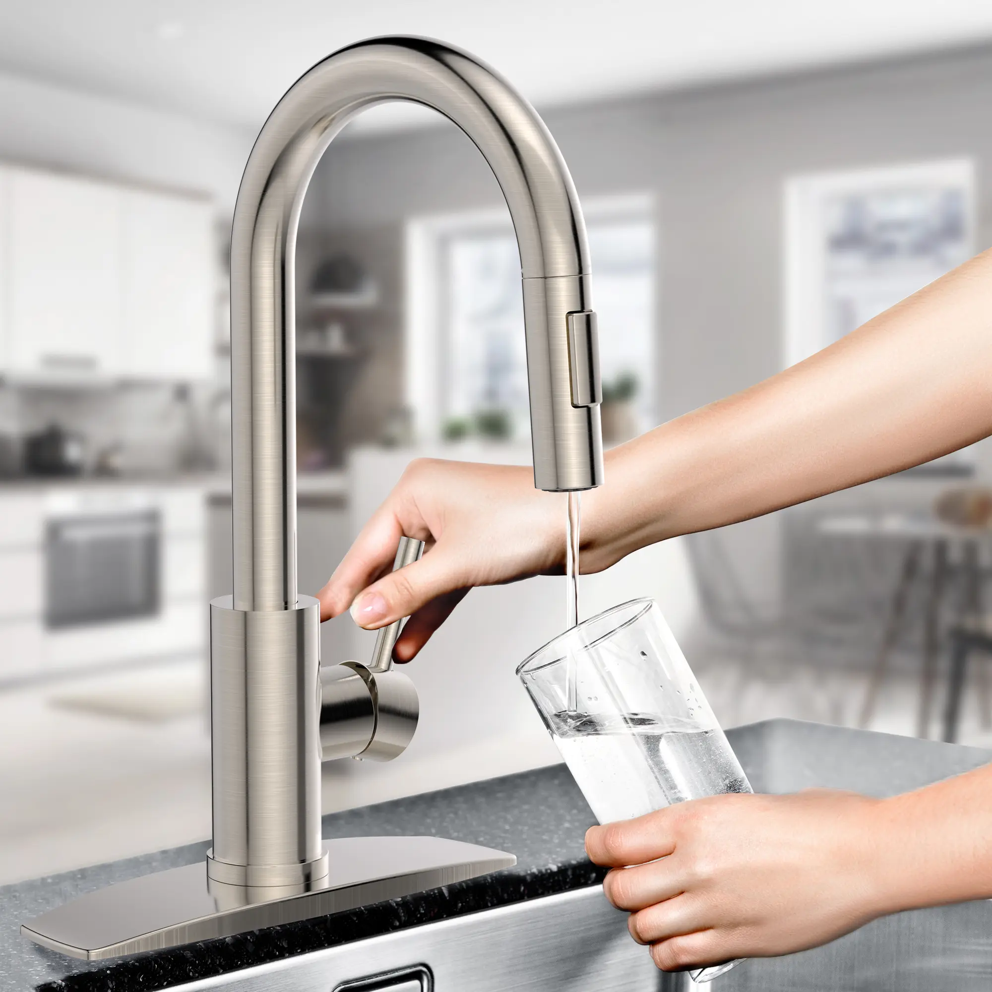·【Simple and stylish design】FORIOUS kitchen faucets with a high arc gooseneck design, simple and generous appearance adapts to various home styles, adding a beauty in your kitchen.15.5 in Height is easy to match most sinks.