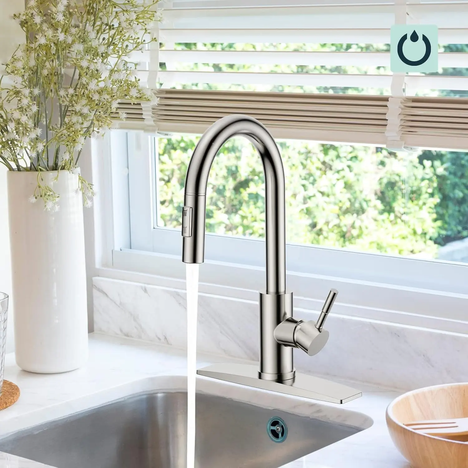 ·【Dual mode settings】FORIOUS kitchen faucet with pull down Sprayer has two modes of spray and water flow, which adapt to different needs. The soft stream mode is used for filling or deep pot rinsing. Powerful spray mode effectively rinses stubborn stains from dishes.