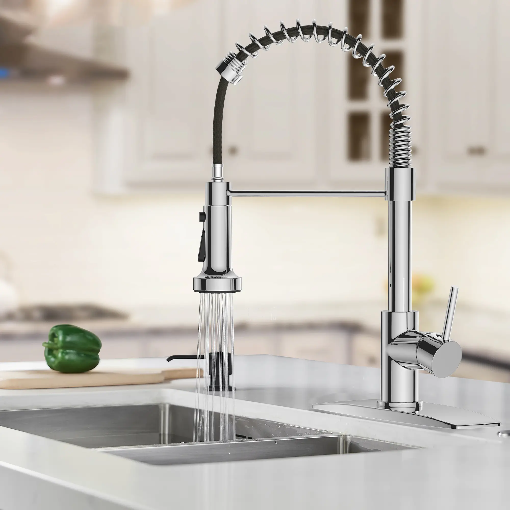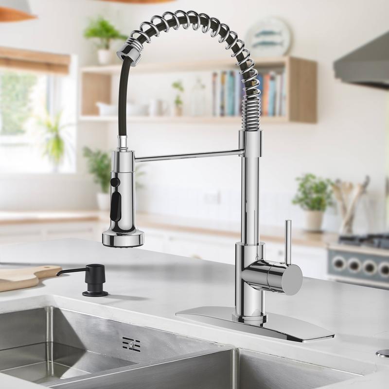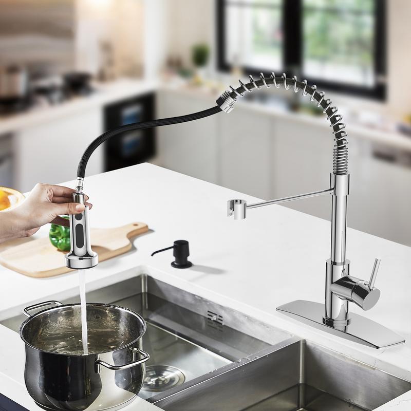 ·【We Focus on Your Various Needs】Featuring a pull-out sprayer with Stream & Spray options, our faucet adapts to various tasks. The 18-inch hose and 360° rotation provide comprehensive sink coverage, and the handle design makes water control intuitive.