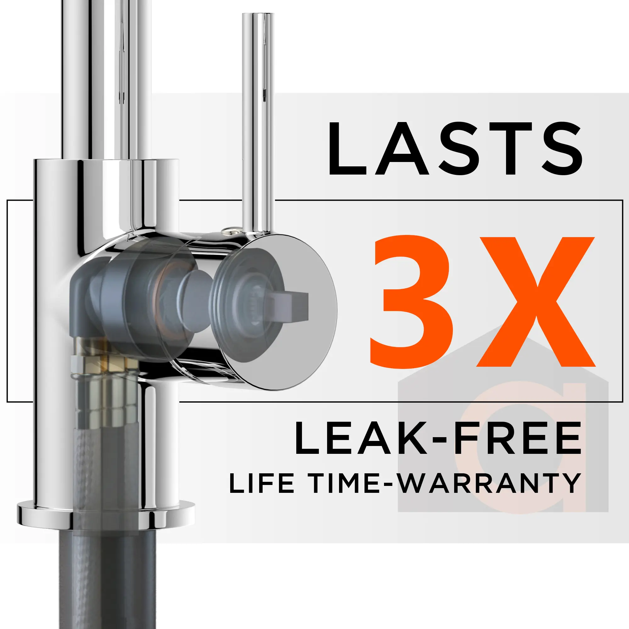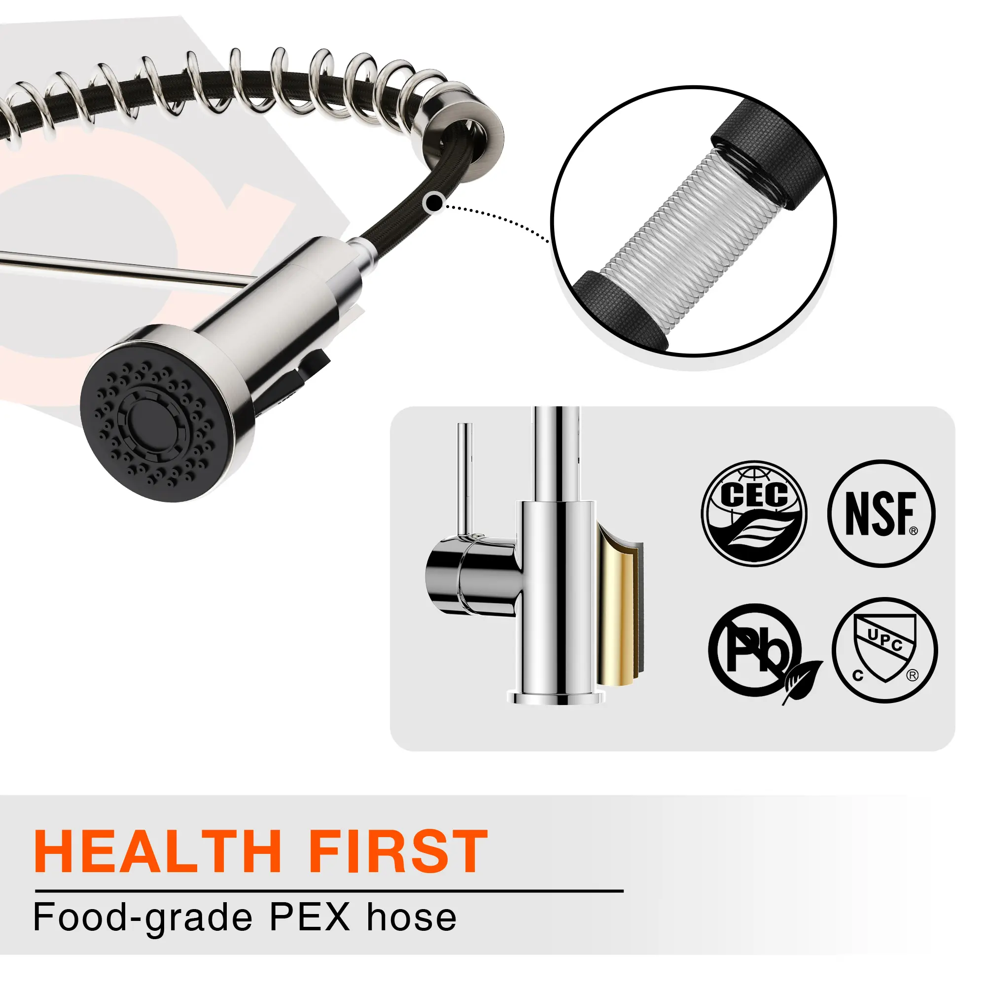 ·【High product Quality】Made from SUS 304 stainless steel, our lead-free faucet is durable and efficient, saving 20% water usage at 1.8 gallons per minute. It includes high-temp PEX hoses to prevent leaks, and a five-layer finish that resists corrosion and spots, ensuring low maintenance.