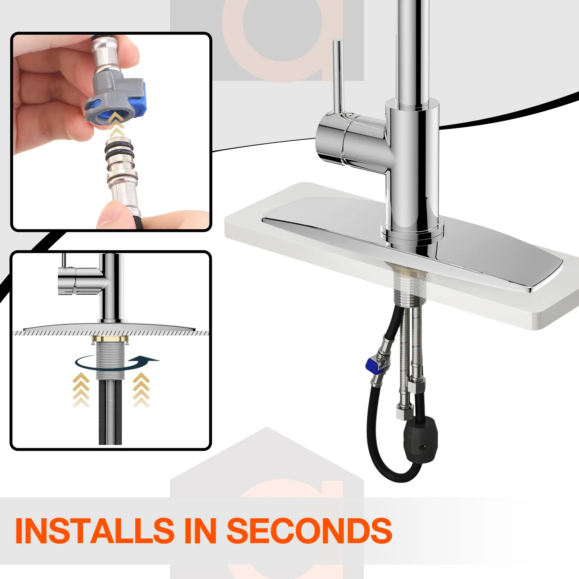 ·【Minutes to Install】Our faucet is designed for simple, one-person installation, complete with a 10-inch deck plate for various sink configurations. All hardware is included, allowing for a quick install under 15 minutes, saving you time and money.