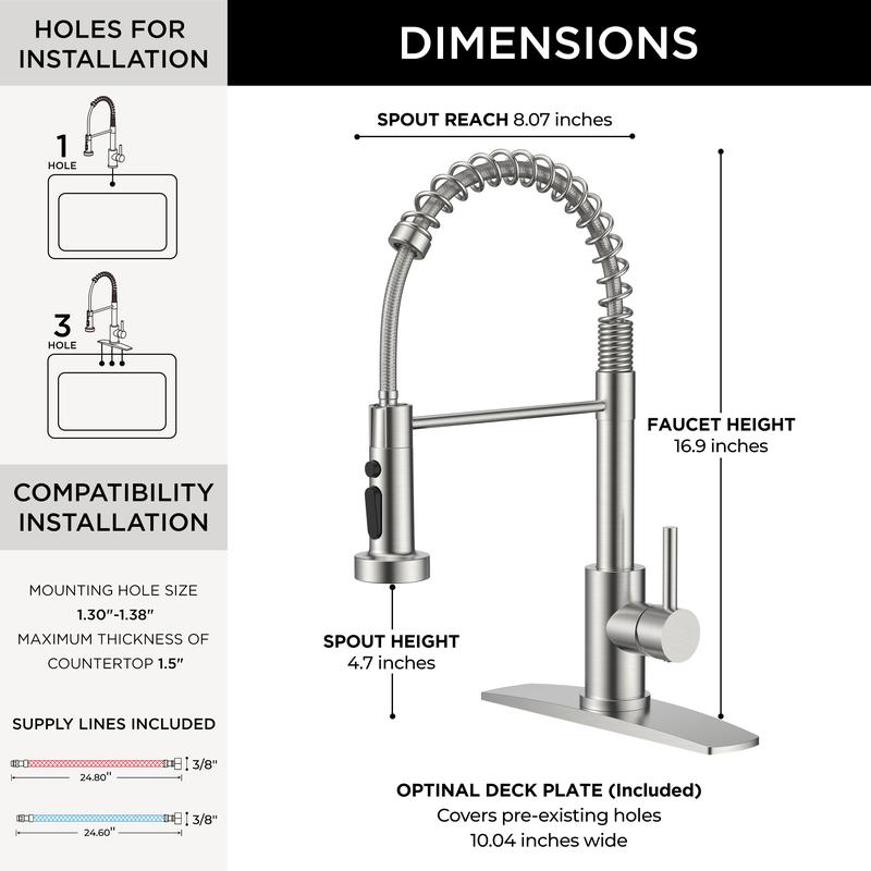 ·【DIY friendly installation in compact size】 With a 17-inch height to fit underneath almost any kitchen cabinet. Just Install our faucet for kitchen sink effortlessly in under 15 minutes without professional assistance. The FORIOUS faucet includes a 10-inch detachable deck plate, fitting one or three-hole kitchen sinks. Mounting hardware is provided for a hassle-free setup, saving you time and money with our user-friendly design.