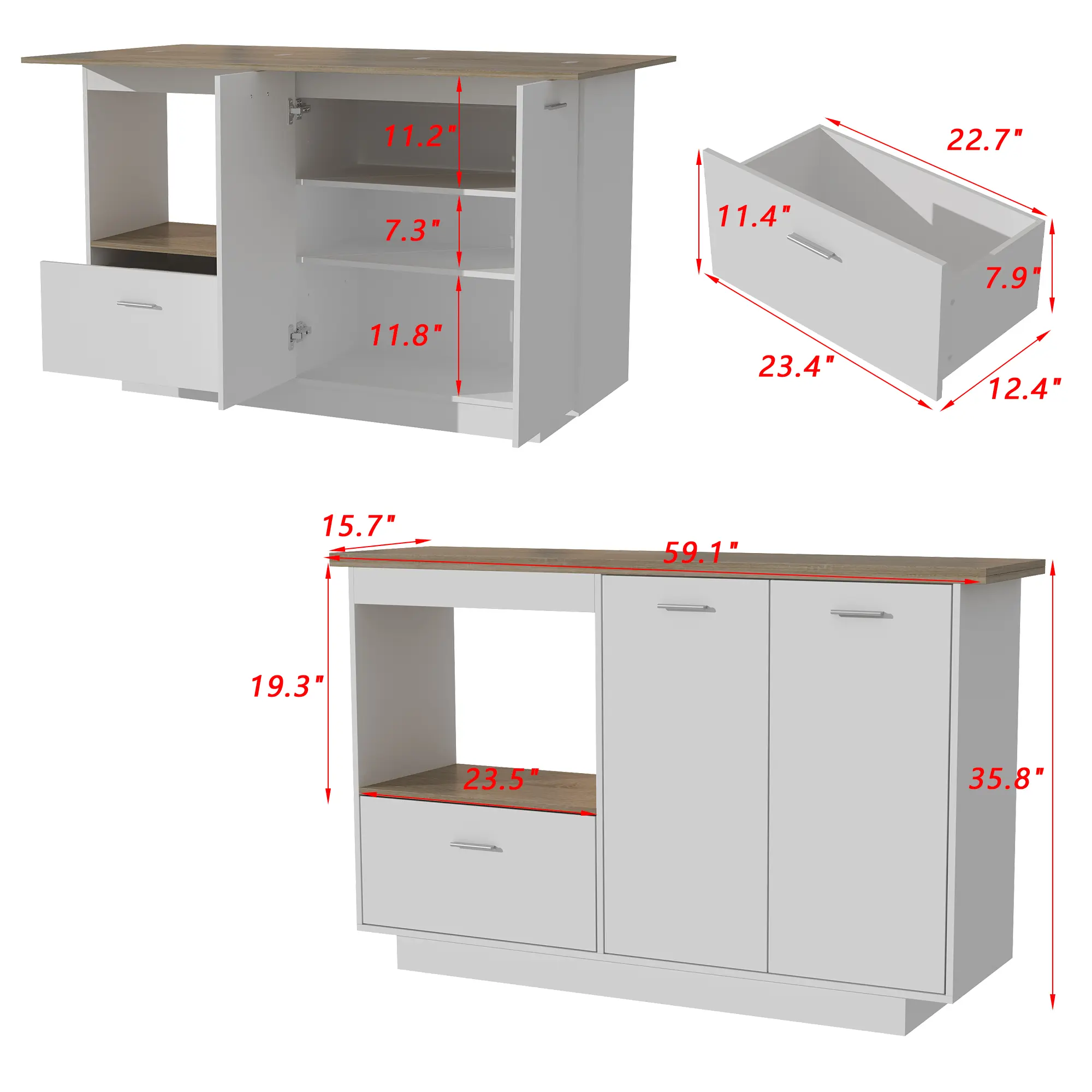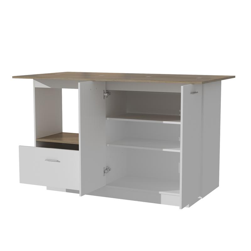 ·[Dimensions & Assembly Required]: Overall Dimensions: 59.1"L x 15.7"D - 31.5"D x 35.8"H. Gross Weight: 144lbs. This kitchen island is 100% assembly needed and it requires 1-2 people to put it together.