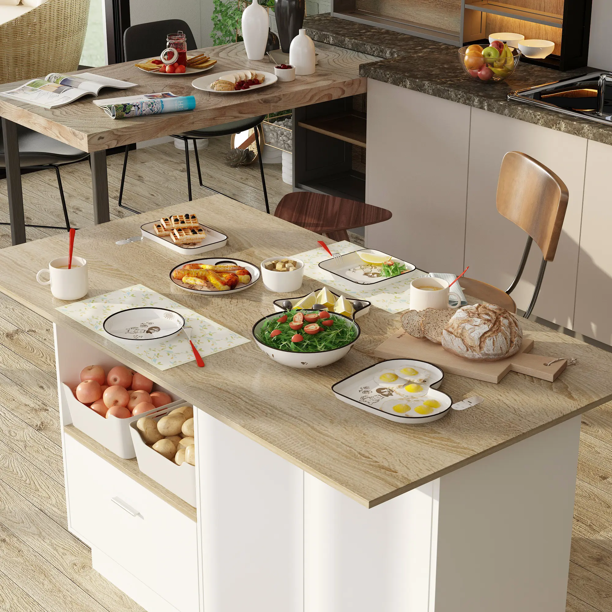 ·[Foldable Countertop]: Our two-tone kitchen island comes with a spacious fodable countertop, there is wide space for your chopping, cutting, mixing tasks, it is convenient to take and organize your kitchen tools after meals. You can conveniently organize it after using.
