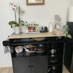 ·Classified Storage Neat and Orderly: With a door cabinet , a large cubby, a drawer, adjustable open three shelves wine rack and cup hanging. Attached spice rack, towel bars and some hooks on each side, all to help you organize and store kitchen supplies by category