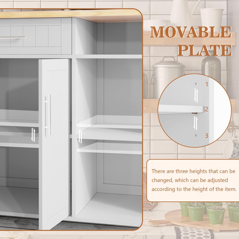 Walsunny 42'' Kitchen Island Cart Storage with Solid Wood Top - Plenty of Storage Space, Adjustable Shelf, Built-In Wheels - Cabinet, Organiser