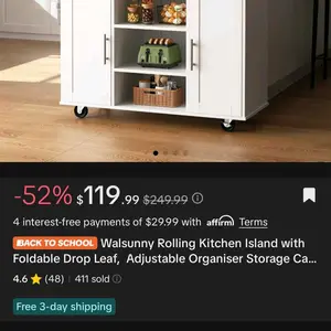 I Absolutely Love my Island it's actually bigger than I thought it would be. If you need more counter space and storage space then you absolutely need to purchase this Beautiful Island. I Love it đđđđ