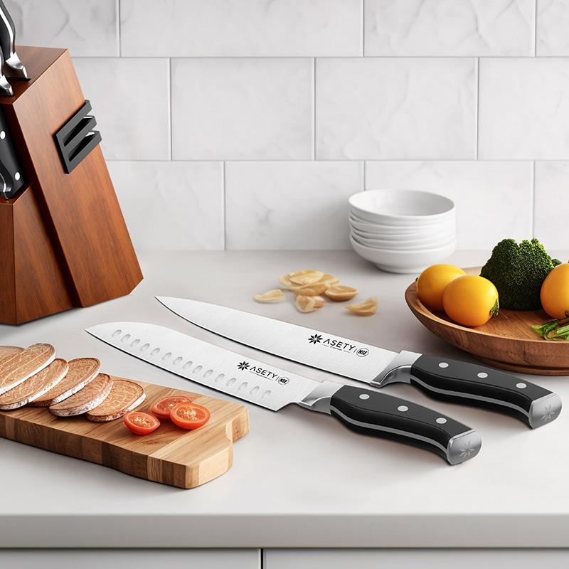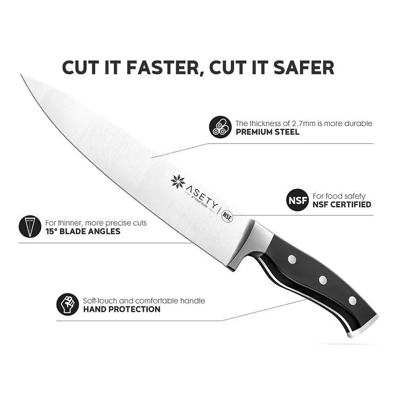 HEALTHY, BUILT TO LAST: 🌟 All knives of ASETY are food contact safe (NSF certified). Made of premium 1.4116 steel, this set of kitchen knives features fully forged construction, fine-edge blade, and triple-rivet handle. Choose our knives for a safe and long-lasting cutting experience.