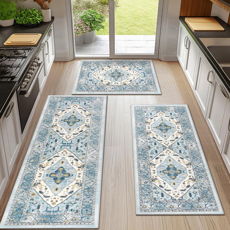 ·Farmhouse 3 Piece Kitchen Rug Set: Hebe kitchen mats for floor measures 20"x32"+20"x48"+20"x59", perfect wider and larger size kitchen matts with vintage design brings a splash of color and adds an elegant touch to your home.