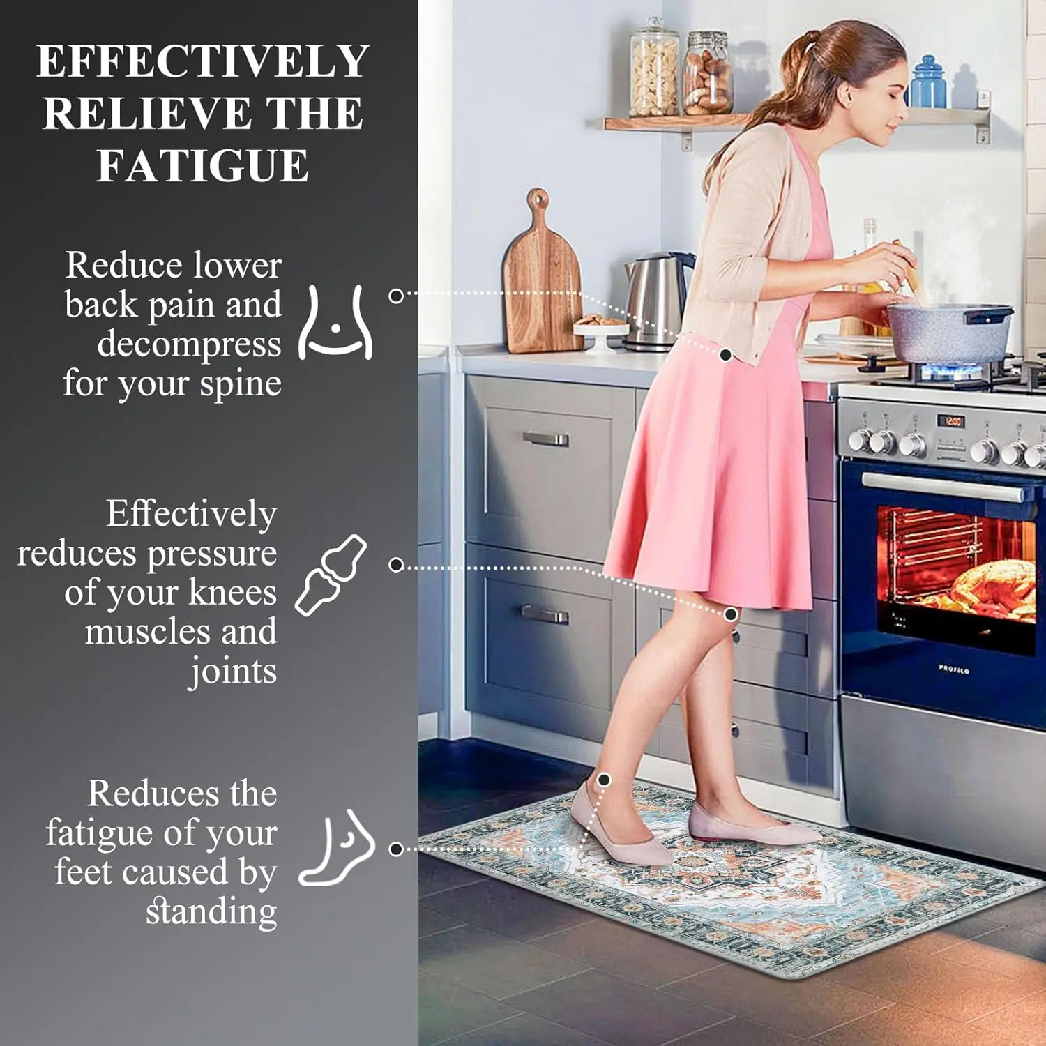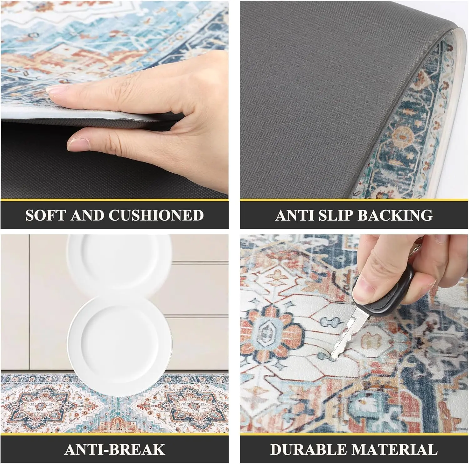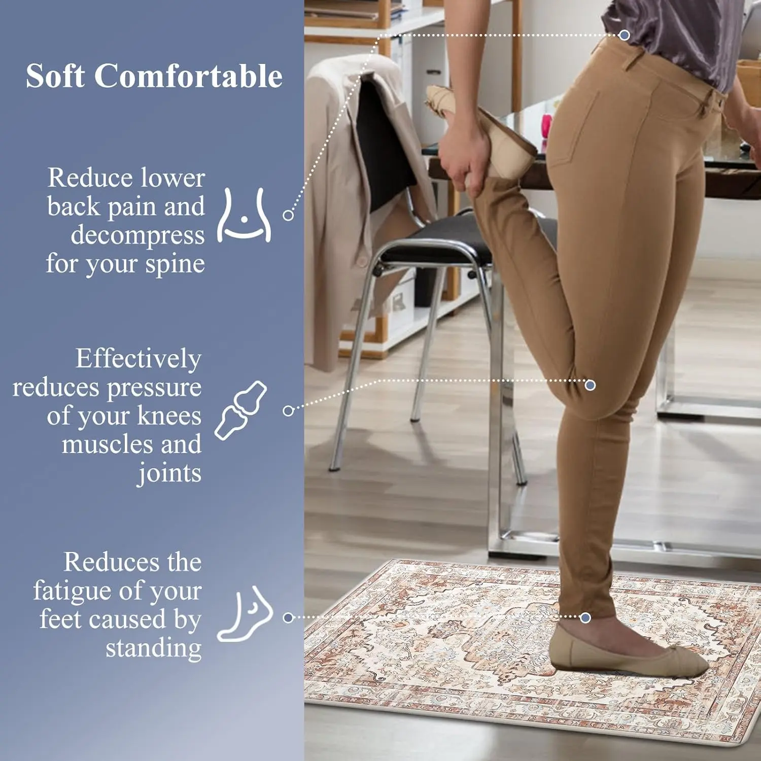 ·With 0.4 inches thickness comfort soft material, these mats offer ample support for your feet and knees. They improve circulation and posture, ensuring comfortable standing in the kitchen or at any work station. 🌟