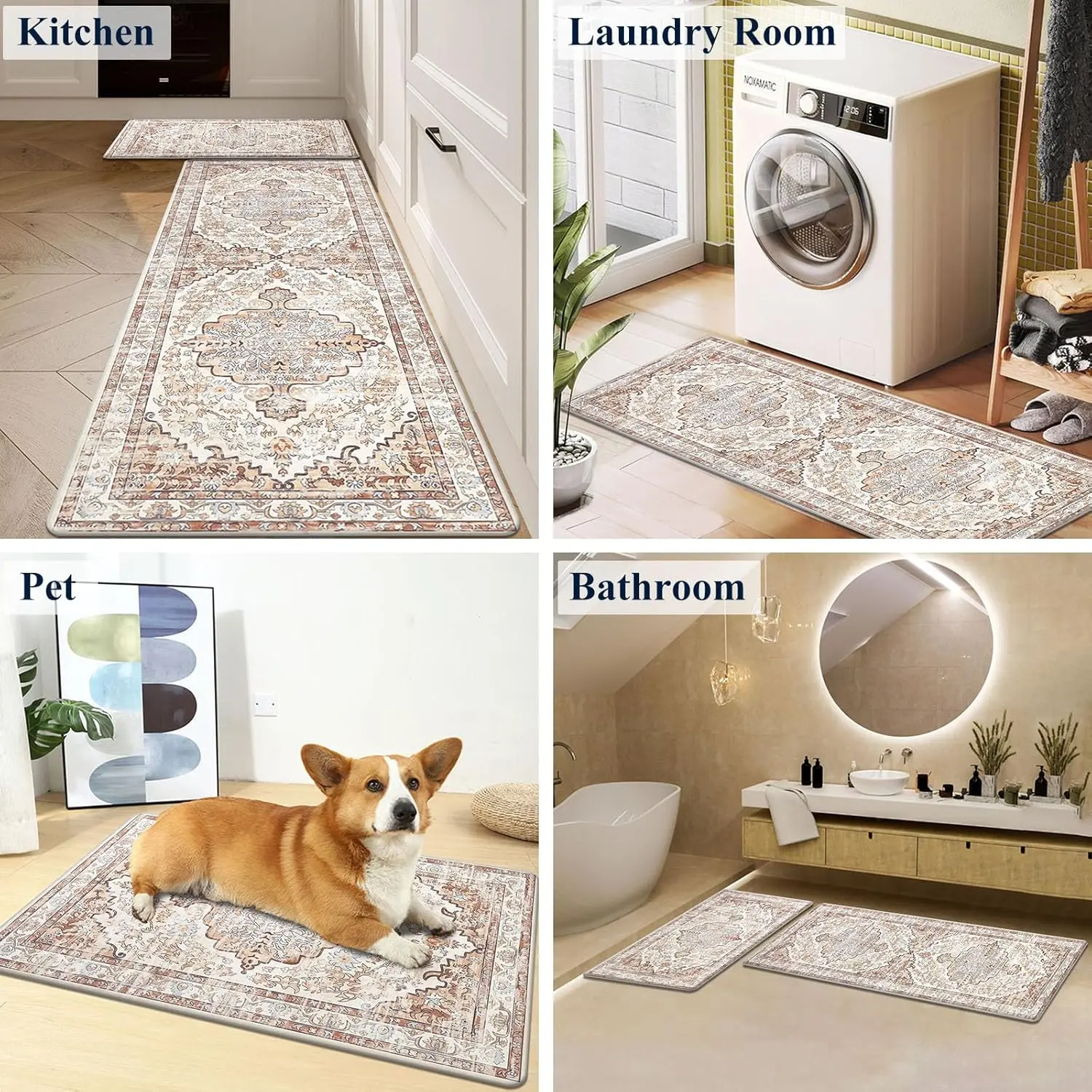 ·These mats feature a textured surface, rubber non-slip backing, and unique beveled edges. They prevent slipping and falling, providing peace of mind. Perfect for homes with pets or kids. 🐾