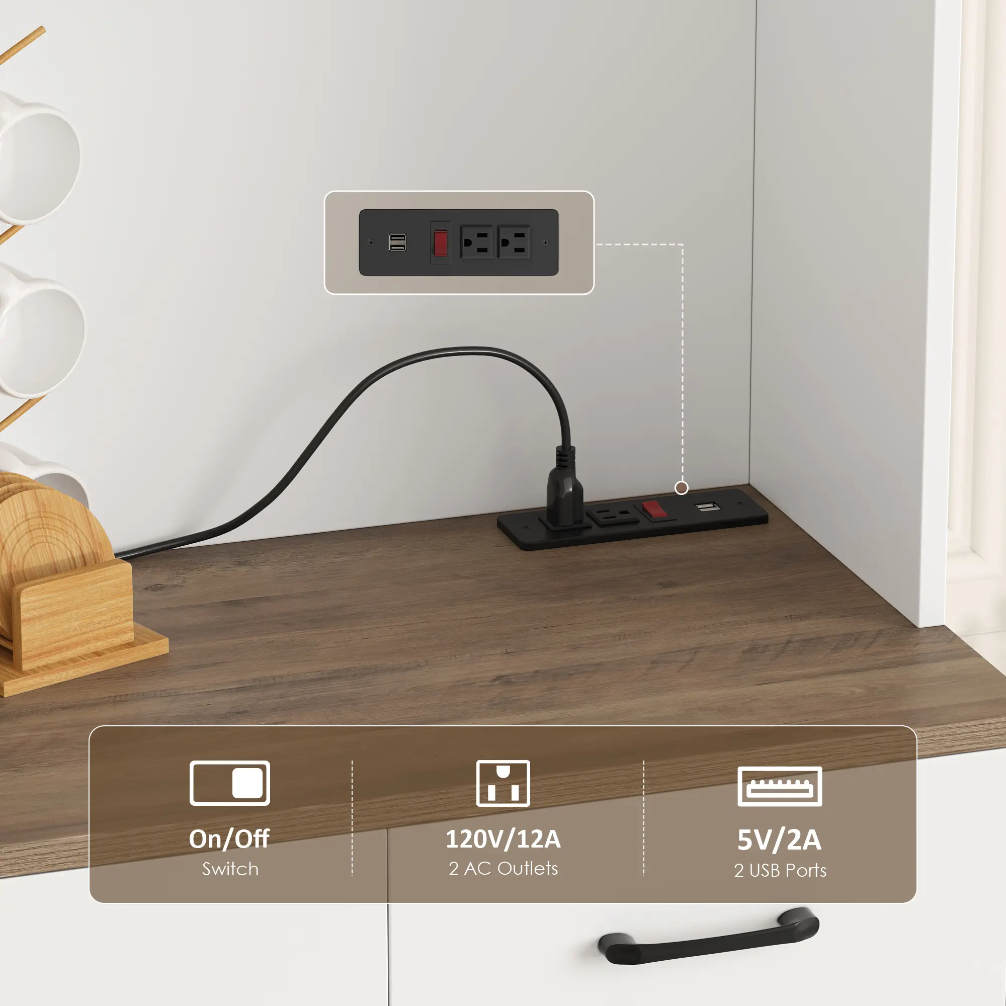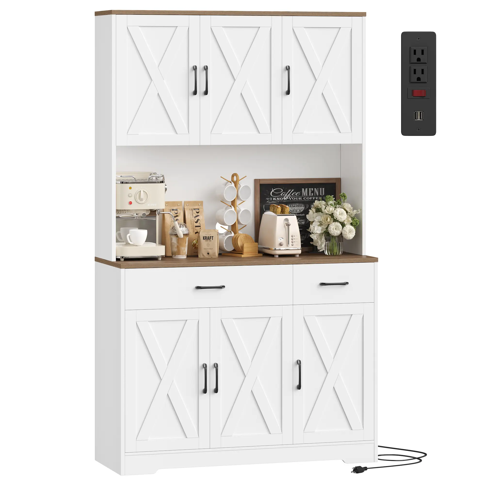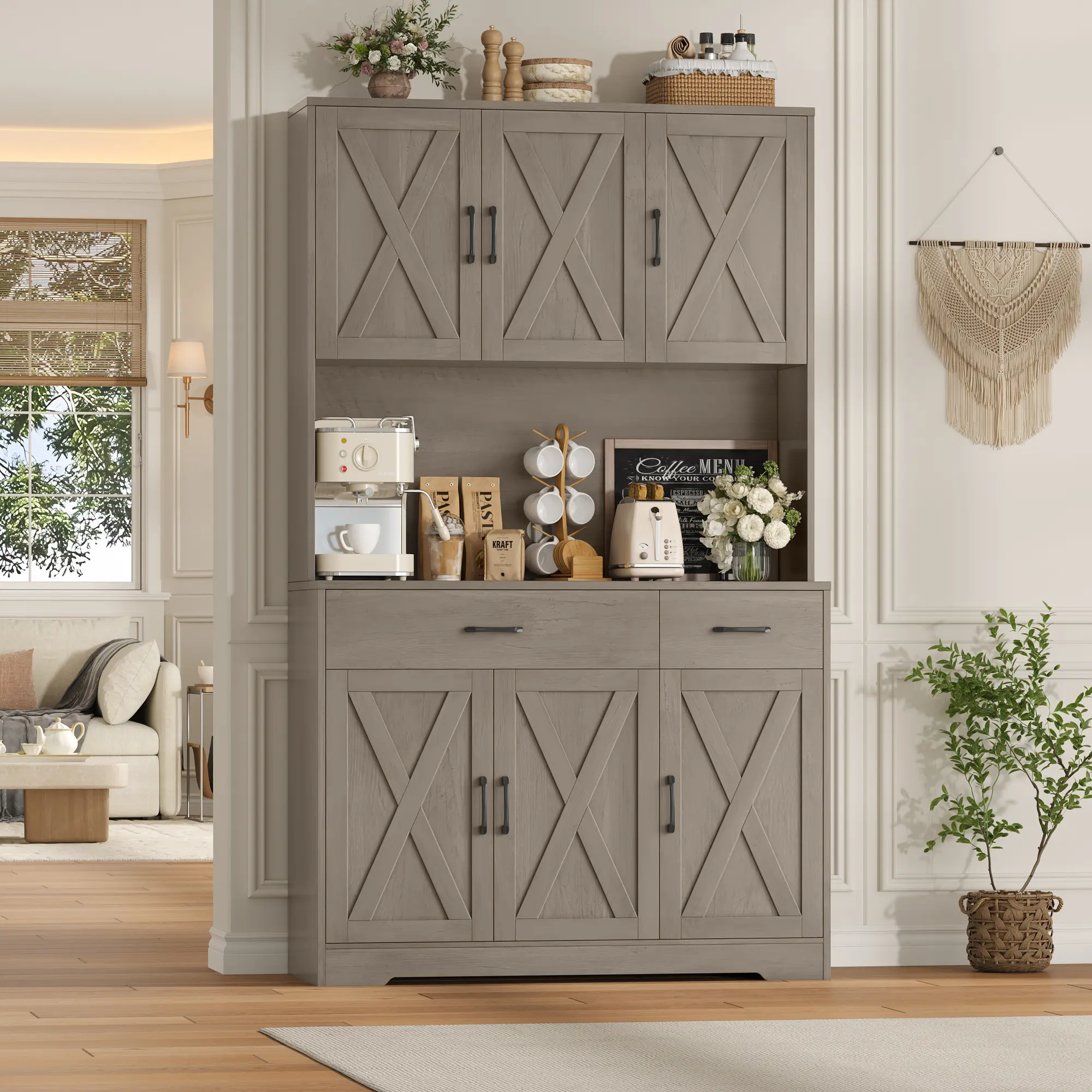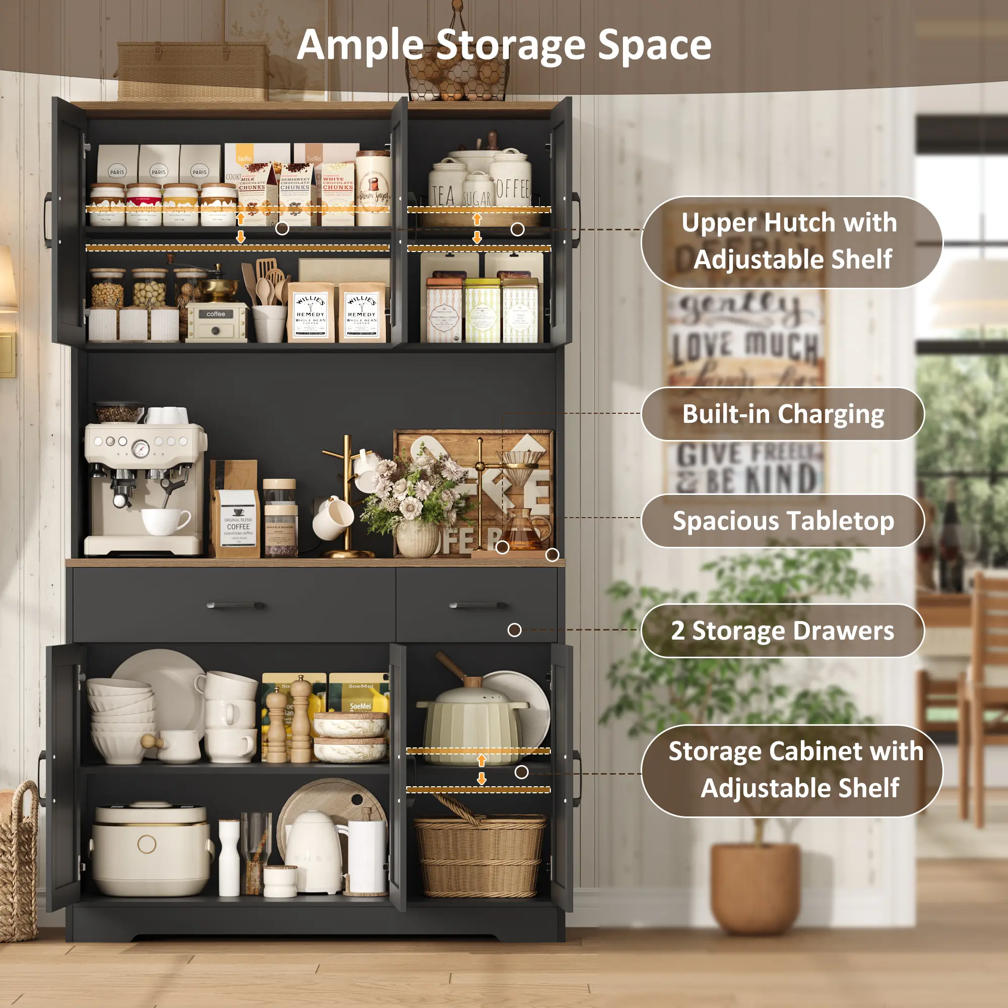 ·Eye-Catching Look: The coffee hutch can beautifully fit in any room, serving as a storage cabinet, buffet sideboard, or food cabinet.