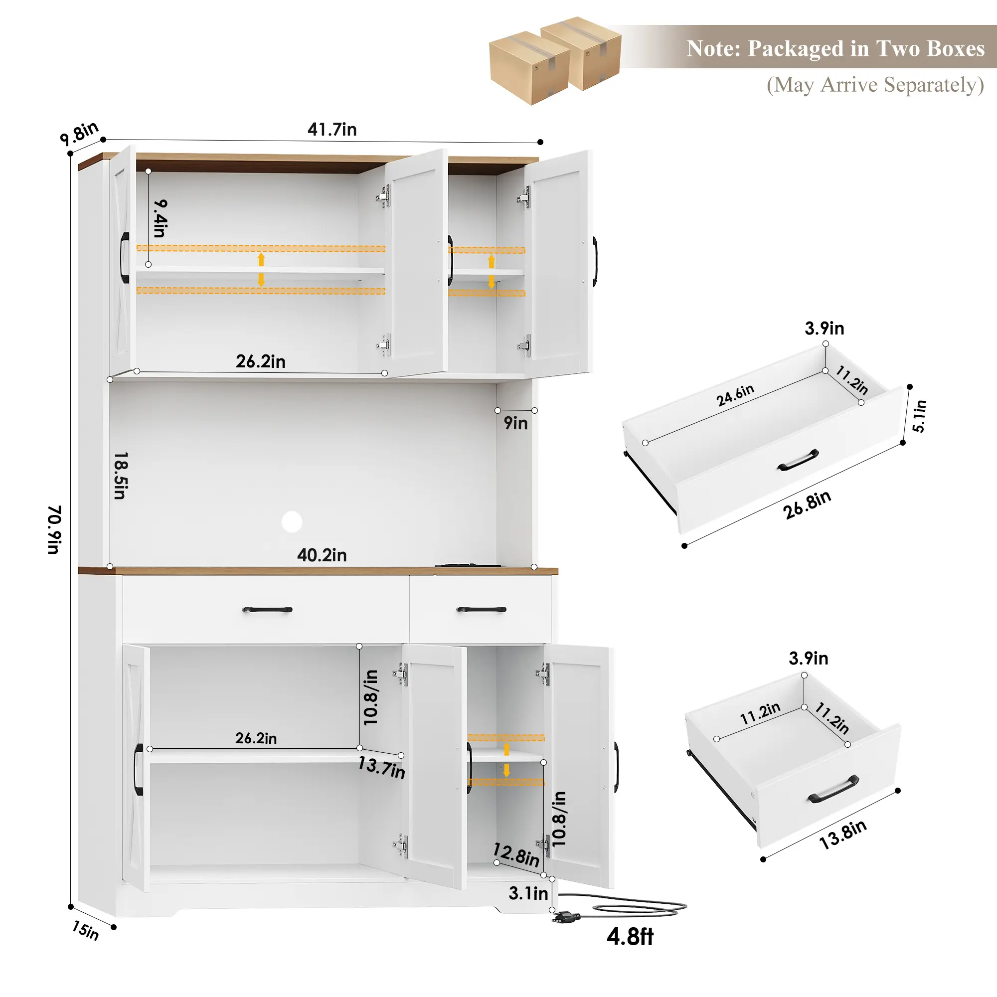 【2 Packages Shipping】HOSTACK 71" Tall Kitchen Pantry Storage Cabinet