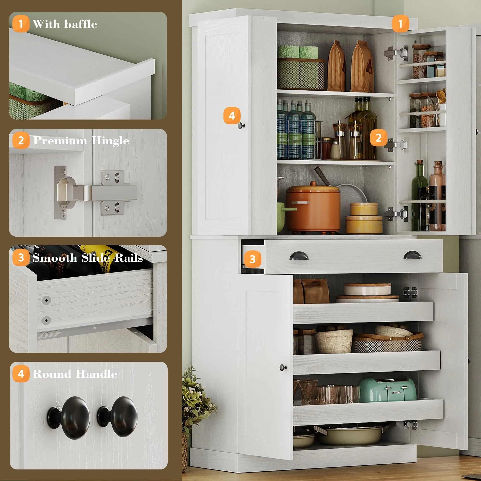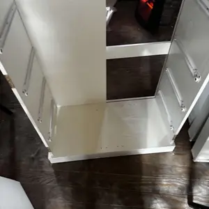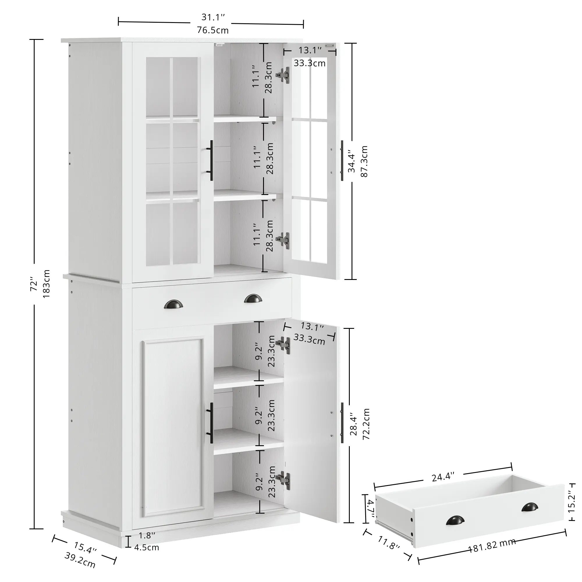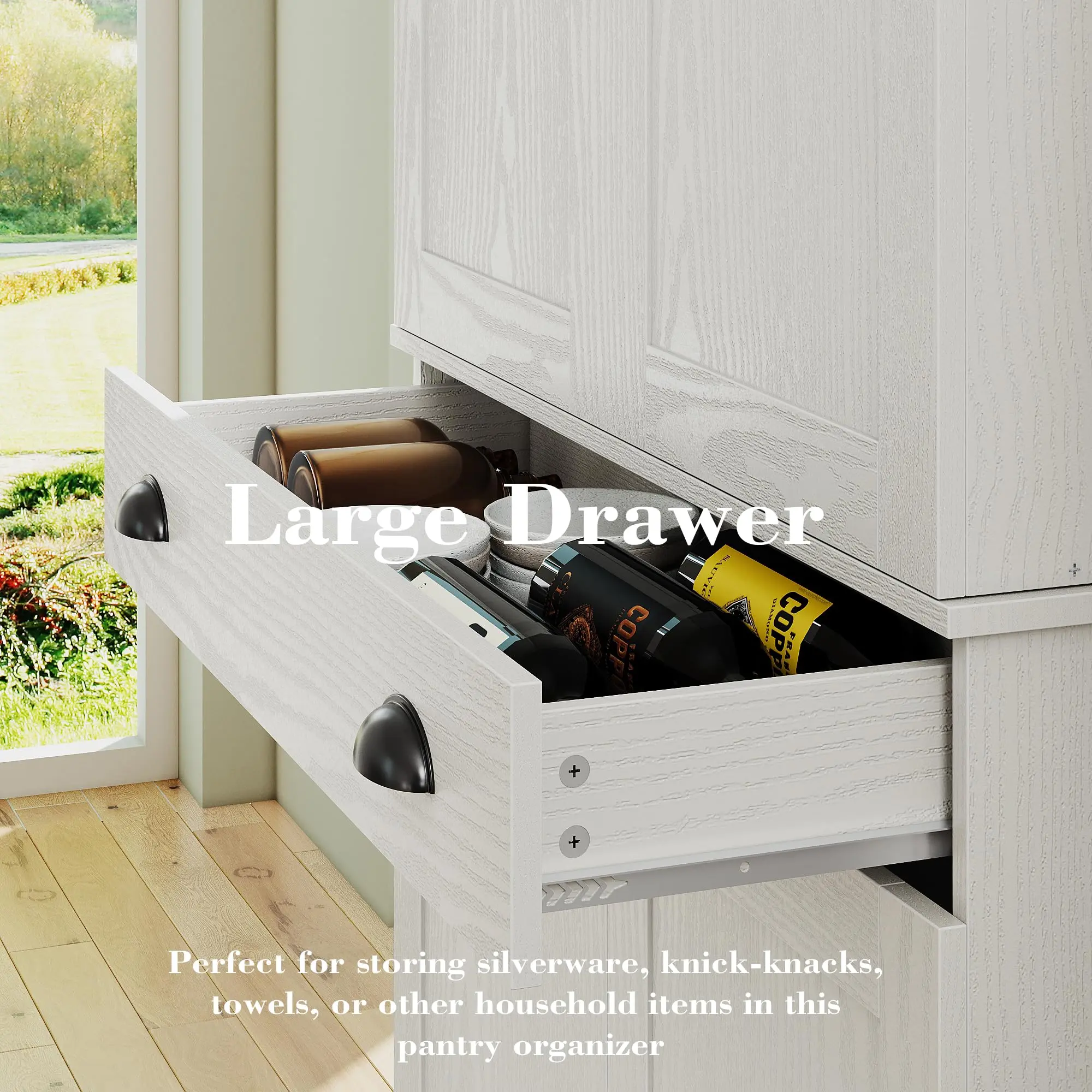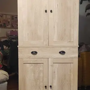 I was so excited in getting this pantry for our kitchen, now I am so disappointed 😔 Suppose to be 4 drawers there was only 3 and a back panel missing. It’s nice looking, but not sturdy.! Can’t send it back since it’s put together … guess hubby will have to fortify it to be stronger