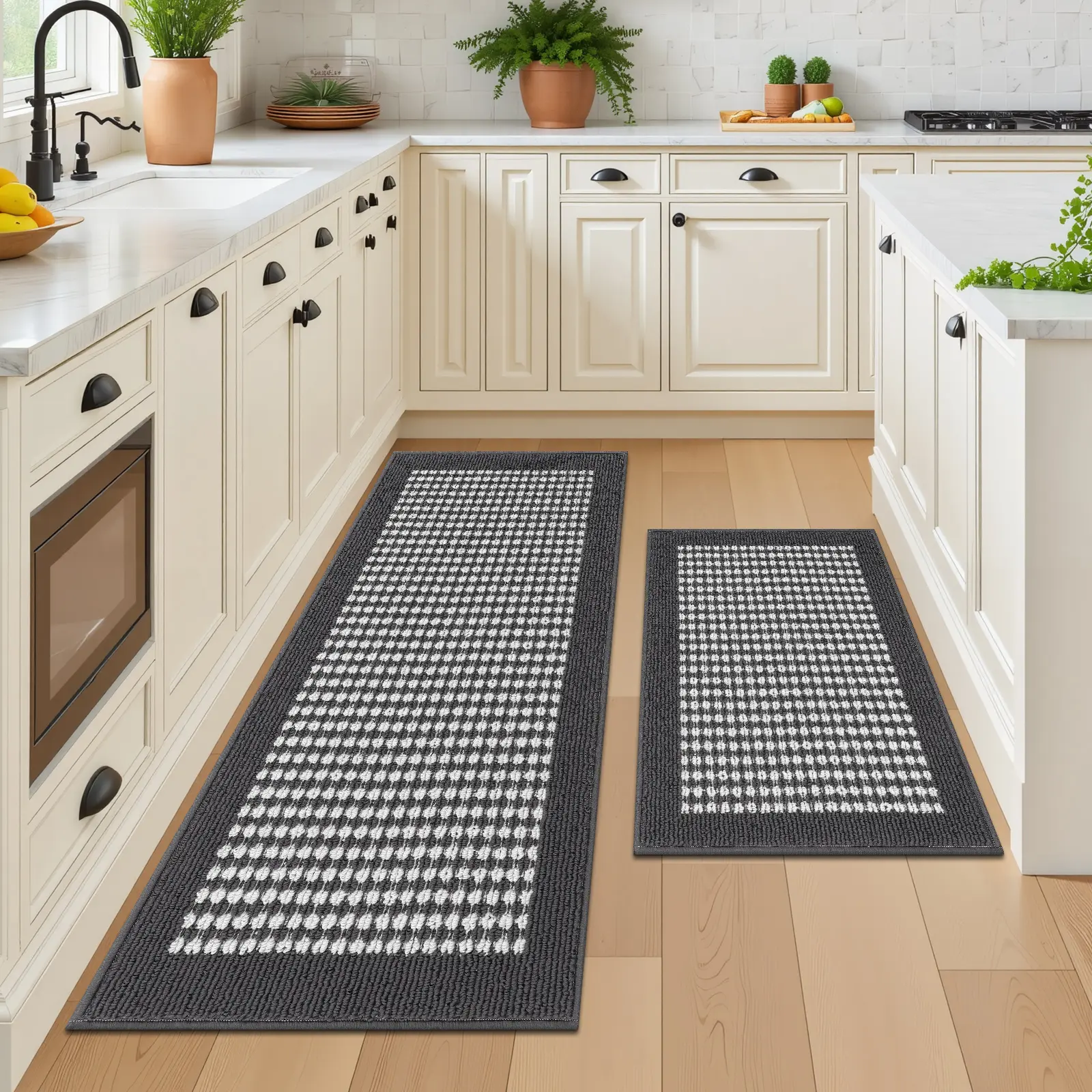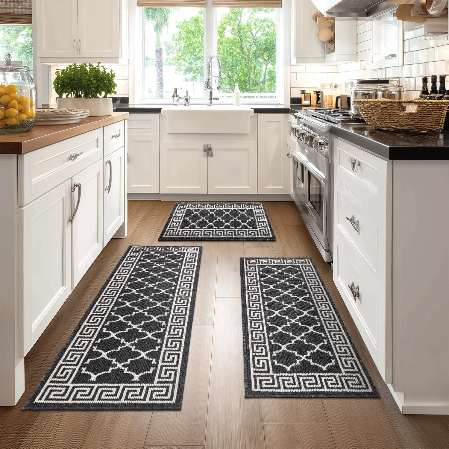 • The kitchen rugs come in three sizes: 50*80cm, 50*120cm, and 50*150cm. Perfect for laundry rooms, kitchens, offices, sink areas, entryways, or high-traffic indoor spaces. Enjoy a cleaner, more beautiful home with ample standing room. Ideal for those who stand for long periods.