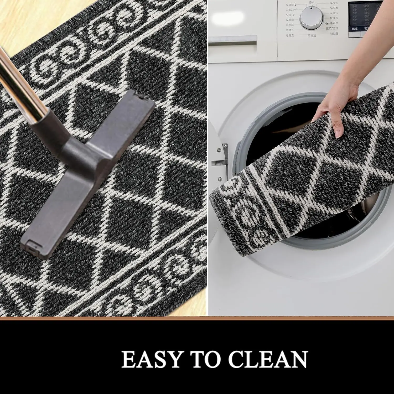 • Shake off dirt or use a handheld vacuum cleaner. Machine washable and dried. Cold water washing recommended. Use mild soap; avoid bleach. Easy maintenance keeps your rugs looking new.