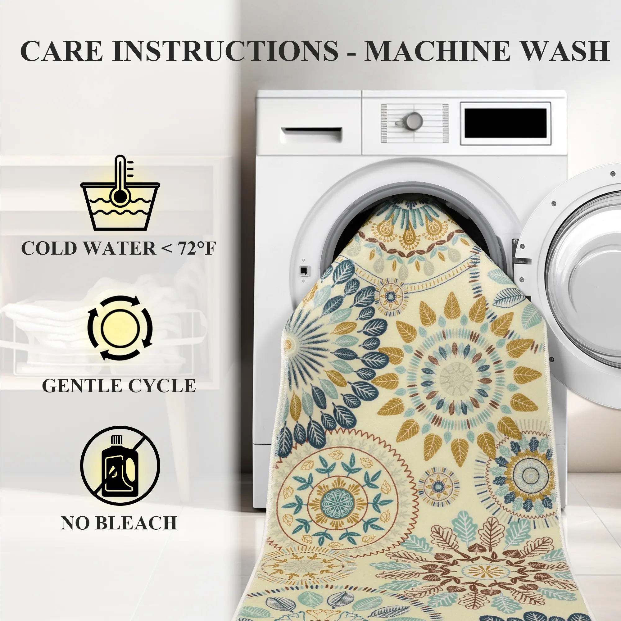 Great rugs! Light enough to wash in a regular washing machine but tough enough to withstand daily wear and tear. Soft to the touch with slip guard on the back. Nice bright coloring