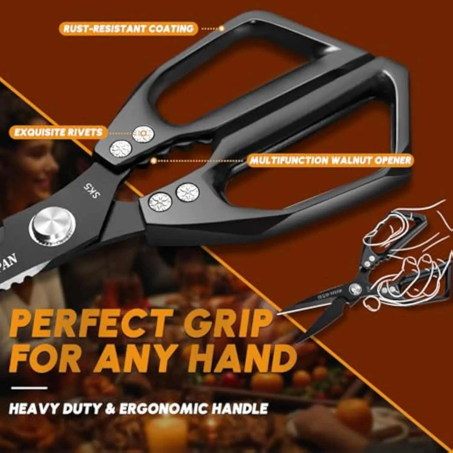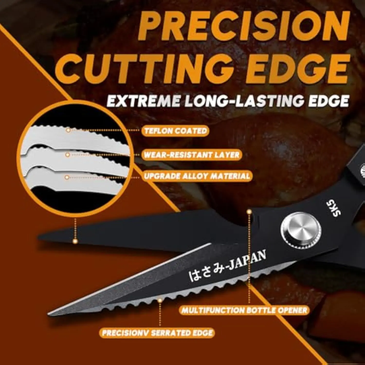 ·Ergonomic Design for Comfort--The ergonomic handles of the HUUSK meat Shears are designed for comfort and ease of use. Whether cutting through chicken bones, fish bones, or other tough foods, the handles ensure a secure and comfortable grip, reducing hand fatigue even during prolonged use.