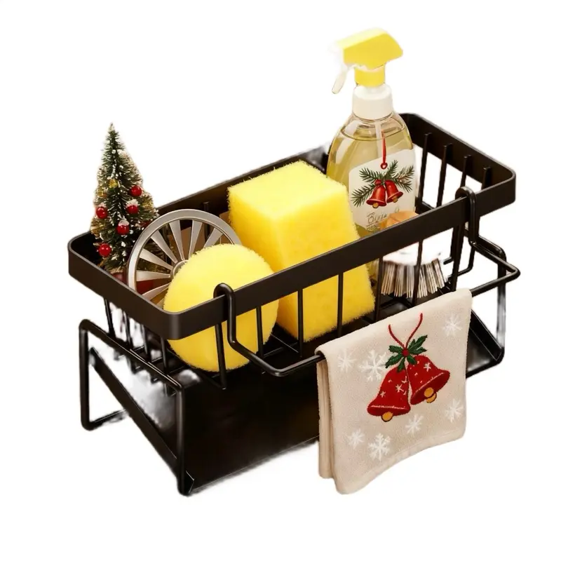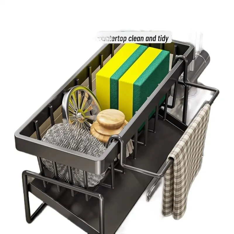 Kitchen Sink Corner Sponge Drain Rack Sink Caddy ultitunctional Durable Cleaning Tool Organizer Storage RackDish Soap Dishdoth Brushes Holder for Kitchen & Bathroom