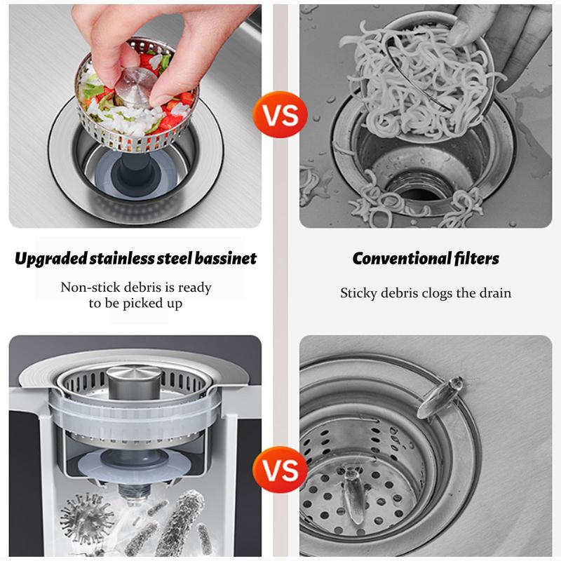 【3 - in - 1 Kitchen Sink Drain Strainer】This upgraded sink drain stopper combines three important functions: water storage/filtration, anti - clogging, and food scraps collection. As a result, it simplifies various kitchen tasks, making the workflow in the kitchen more efficient and significantly enhancing your overall kitchen experience