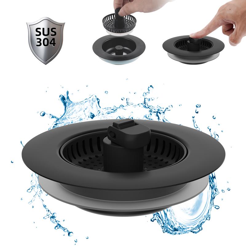 ·【Upgraded Pop-up Stopper & Drain Quickly】The pop up kitchen sink drain stopper is equipped with upgraded one-piece spring-loaded design. With just one press, you can easily switch between water storage and fast drainage strainer. Responsive bounce design for effortless pressing which is suitable for various settings including kitchens, restaurants, hotels, and canteens etc.