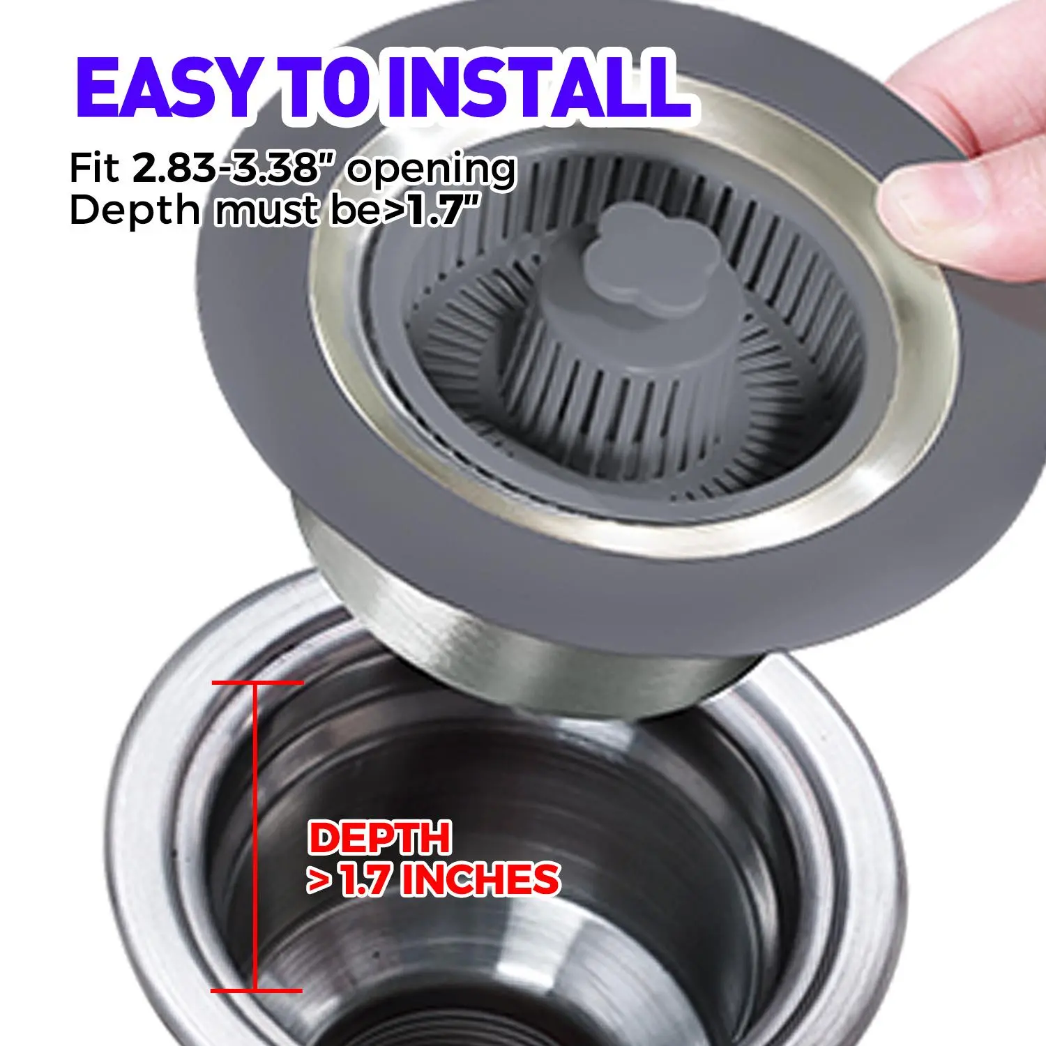 [Fits US Standard Sink Sizes]—Designed to fit most US standard 3-1/2 inch drain holes, our kitchen sink stopper measures 2.76"-3.38". Before purchasing, please measure your sink's drain hole to ensure a perfect fit.
