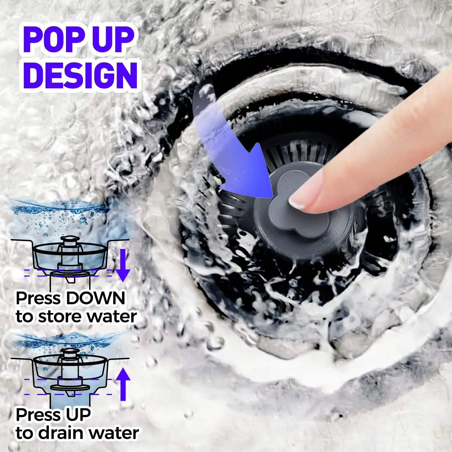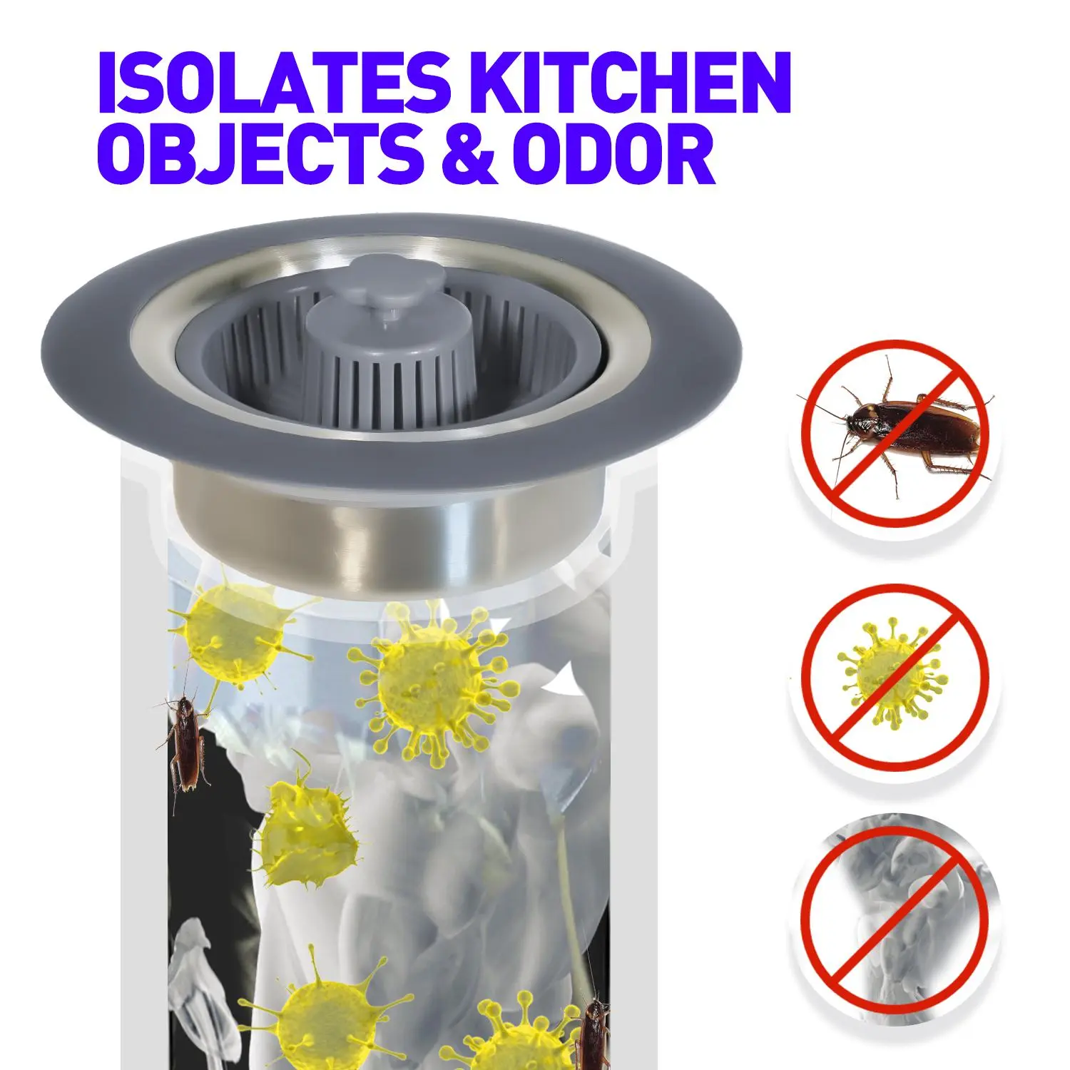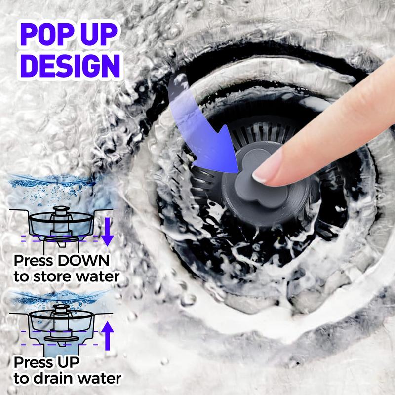 [Multi-Purpose Sink Strainer]—Our kitchen sink strainer doubles as a stopper, effectively preventing odors from spreading. Simply press the button to hold water for washing, and press again to drain water while capturing food scraps and waste to prevent them from going down the drain. It's a reliable solution for preventing clogs.