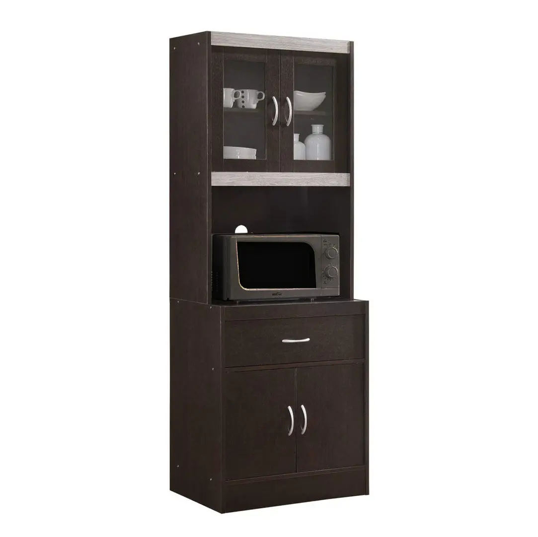 ·Modern kitchen cabinet features an open shelf for a microwave and versatile storage options