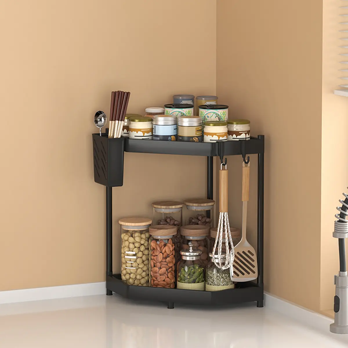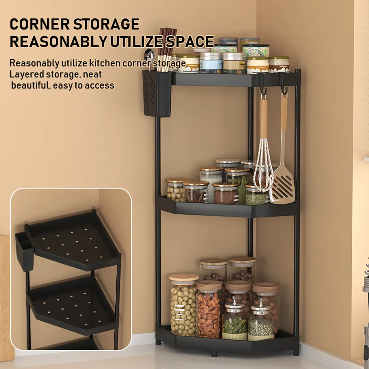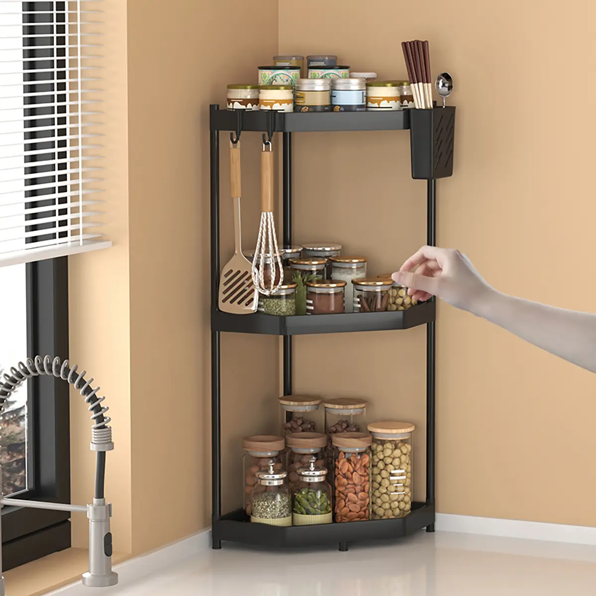 Kitchen Storage Rack, Space-Saving Corner Shelf, 2/3 Layer Standing Organizer, Ideal for Kitchen Utensils & Spices, Durable Design, Home Organizer Hook