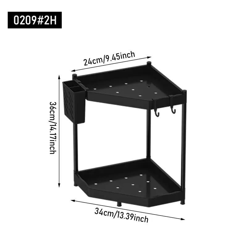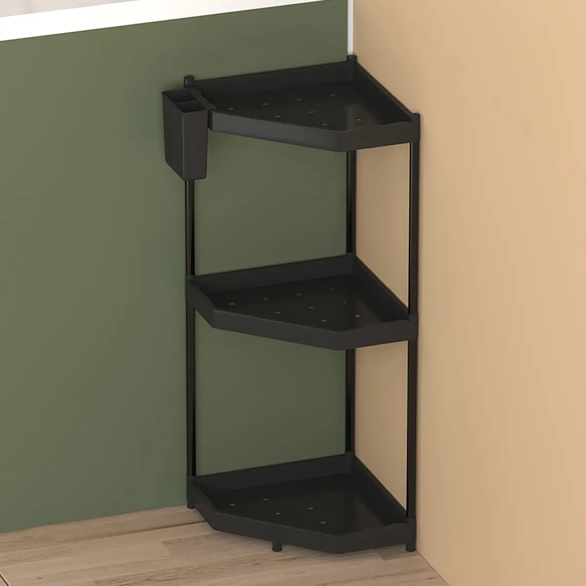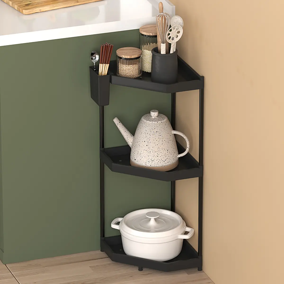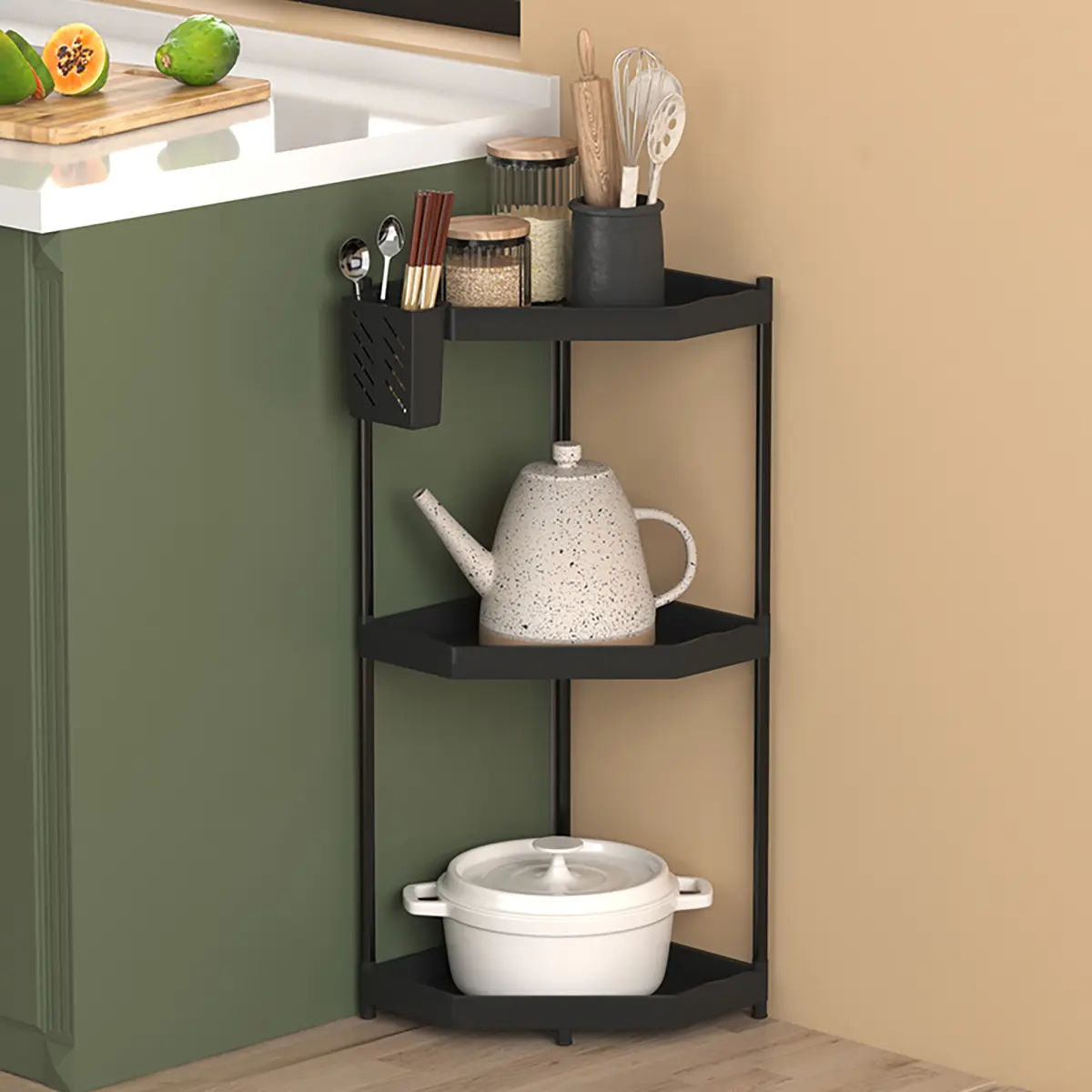 Kitchen Storage Rack, Space-Saving Corner Shelf, 2/3 Layer Standing Organizer, Ideal for Kitchen Utensils & Spices, Durable Design, Home Organizer Hook